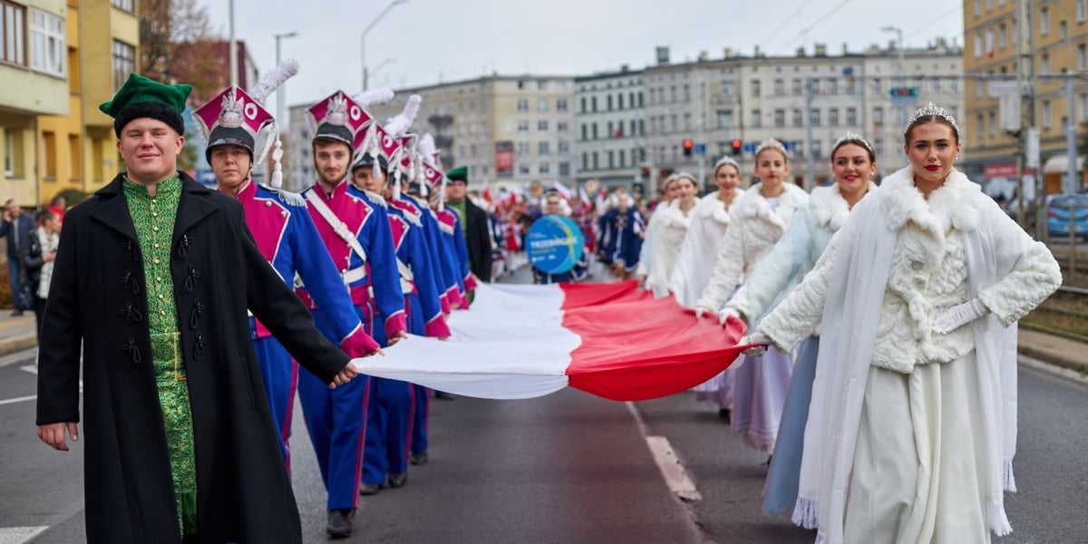 Radosna Parada Niepodległości to już wrocławska tradycja i prawdziwa wielopokoleniowa fiesta z udziałem orkiestr dętych, mażoretek, grup rekonstrukcyjnych i widowiskowych występów chorągwiarzy.