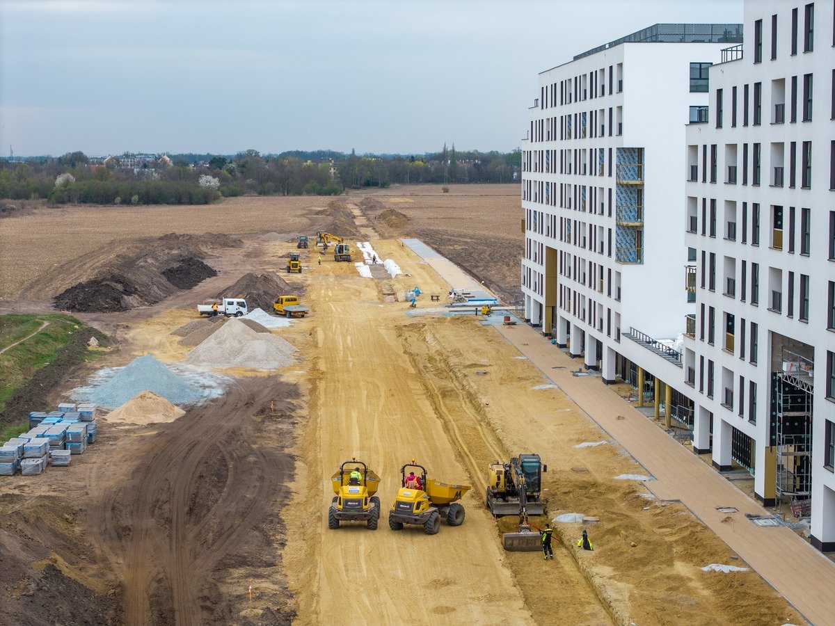 To jednak dopiero początek. Równolegle trwają już prace przy kolejnym odcinku – od ul. Żernickiej w kierunku przyszłego WCS. Na tym etapie wykonawca koncentruje się na budowie sieci podziemnych.