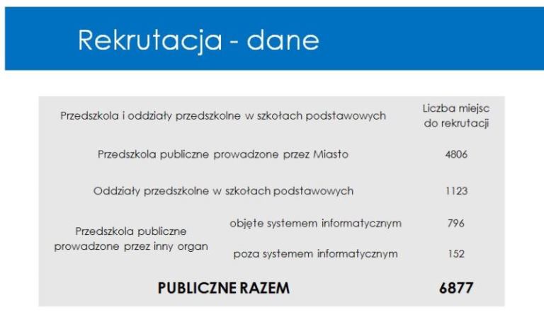W przedszkolach i oddziałach przedszkolnych w szkołach podczas rekrutacji będzie 6877 miejsc.