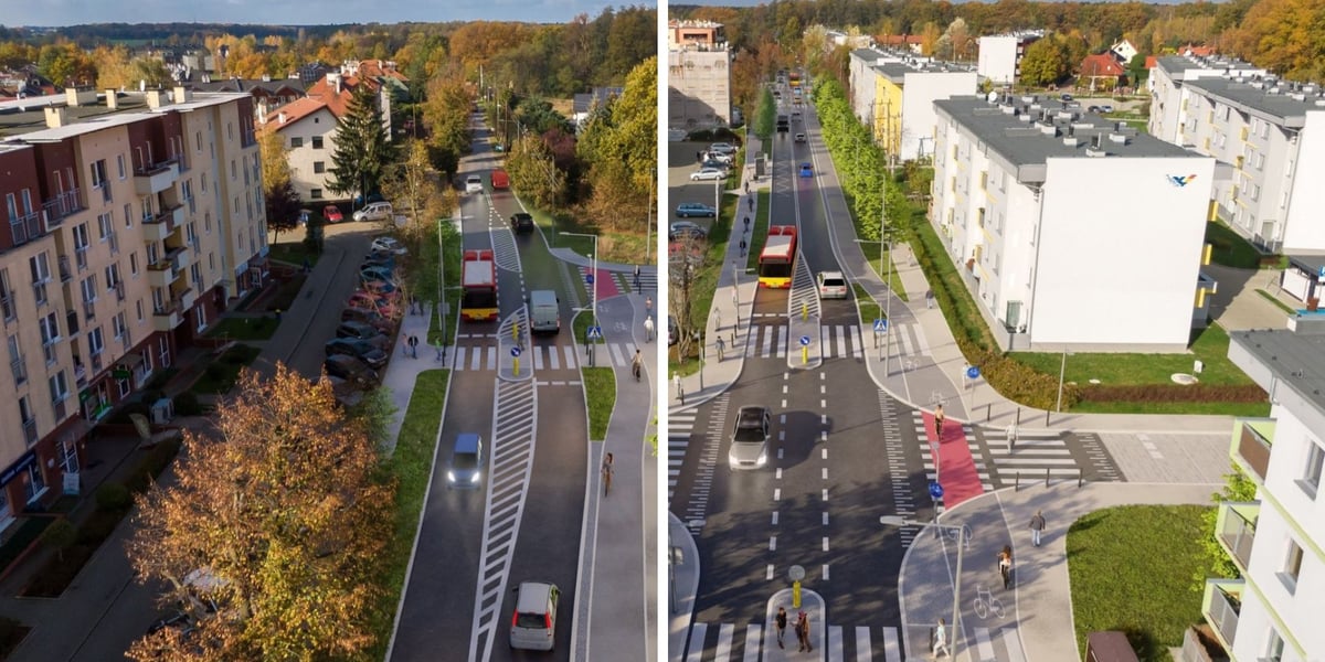 Tak będzie wyglądać ulica Dolnobrzeska na rejonie skrzyżowania z Polkowicką (lewy obrazek) i Prochowicką (prawy obrazek)