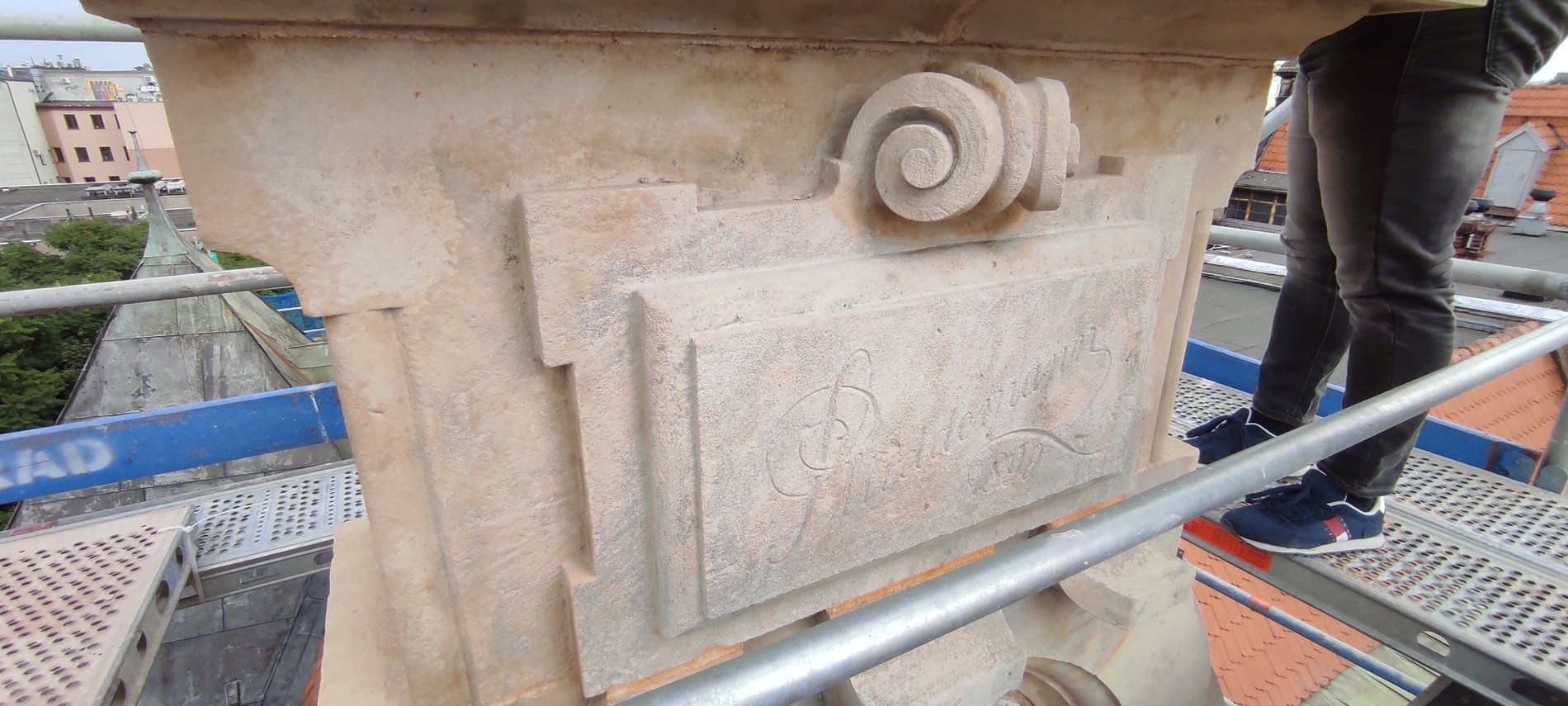 Piaskowcowe elewacje zestarzały się brzydko, przybierając kolor miejskiego brudu. Naturalną barwę kamienia odzyskały dzięki wysiłkowi konserwatorów i restauratorów. — Udało się zachować i oczyścić detale, zrekonstruować złocenia na kutych elementach ozdobnych, odbudować sterczyny oraz przeprowadzić konserwację dekoracyjnego portalu części parterowej, który był bardzo zniszczony, a teraz prezentuje się imponująco — informował Andrzej Palczak w sierpniu 2022 r.