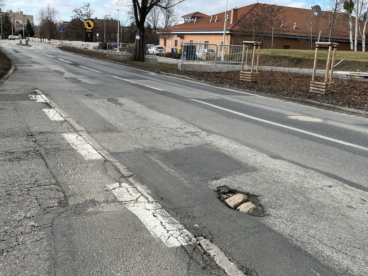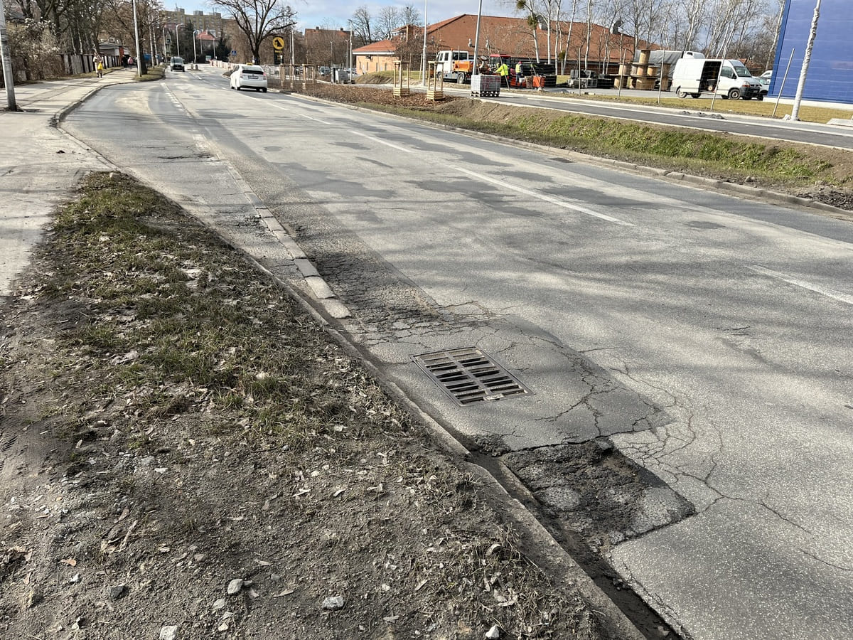 Ulica Kiełczowska przed remontem, marzec 2026