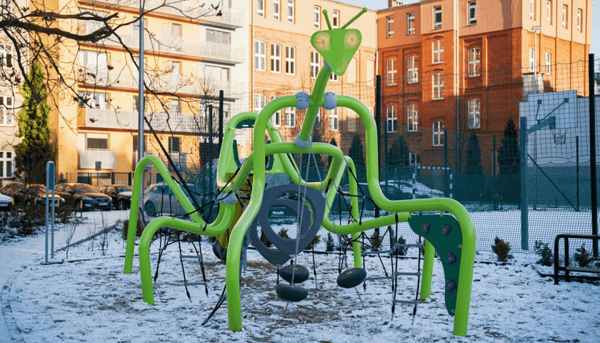 Ciekawą perspektywę na podwórze mają mieszkańcy ostatnich pięter. To oni widzą z góry gigantycznego jeża - symbol podwórka, stworzony z przepuszczalnej, specjalnej nawierzchni boiska i strefy rekreacji.