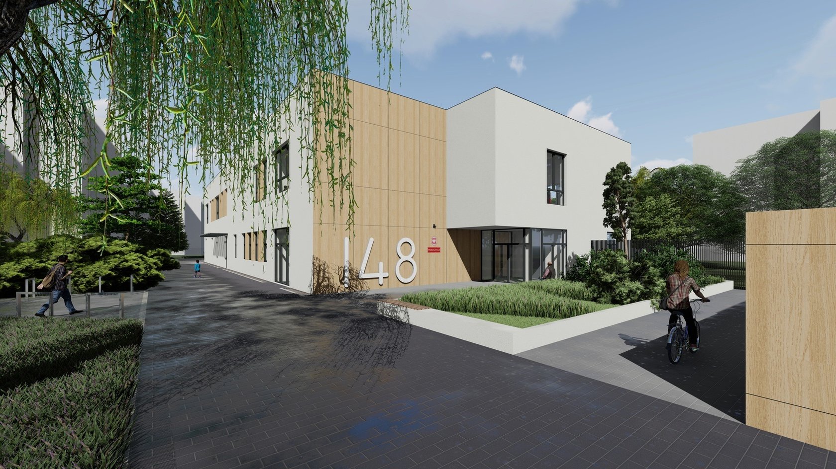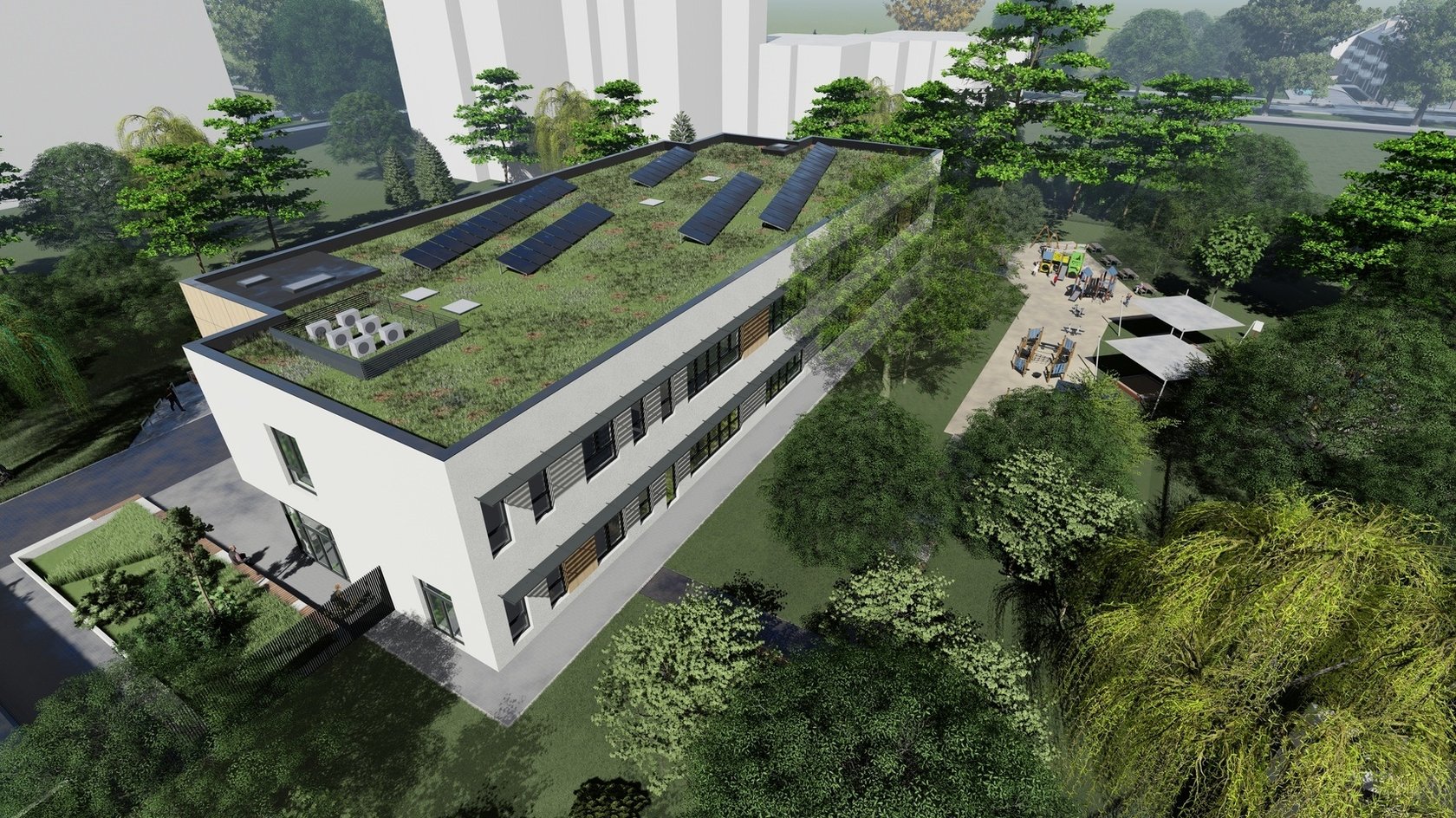 Będzie też ekologicznie – zielony dach, fotowoltaika, pompa ciepła, ogród deszczowy i nawierzchnie zatrzymujące wodę opadową.