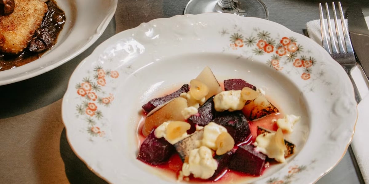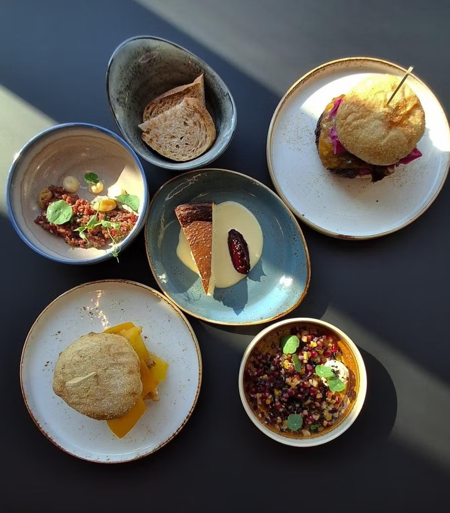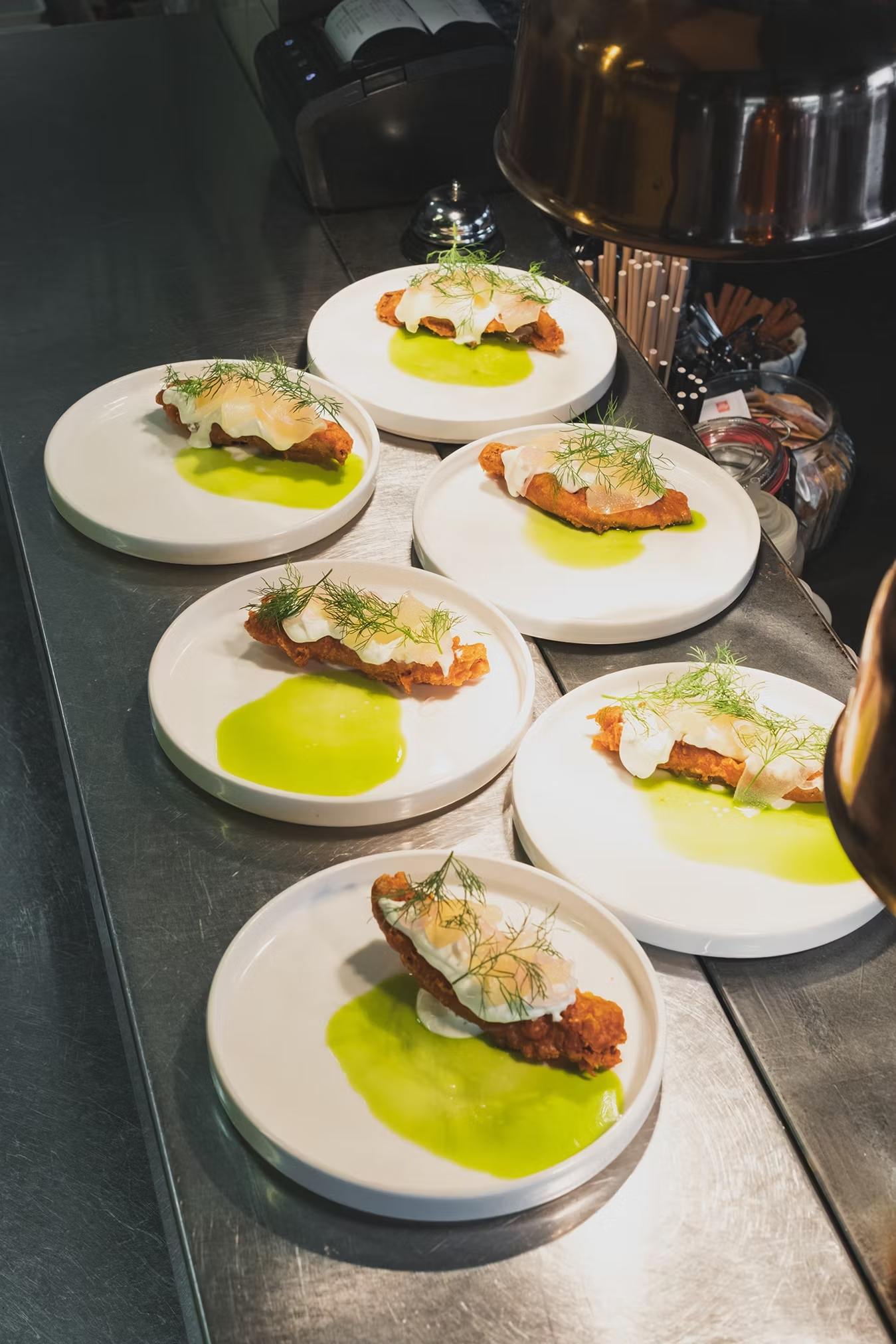 Chef kuchni stawia na sezonowe, najwyższej jakości składniki, które zamienia w dania pełne smaku i finezji - od klasycznego tatara wołowego z masłem szpikowym i kaparami z czosnku niedźwiedziego, przez soczystą kaczkę z pigwą, cykorią i orzechami, po deserowe dzieła, jak sernik baskijski z czarną porzeczką.zapraszają organizatorzy