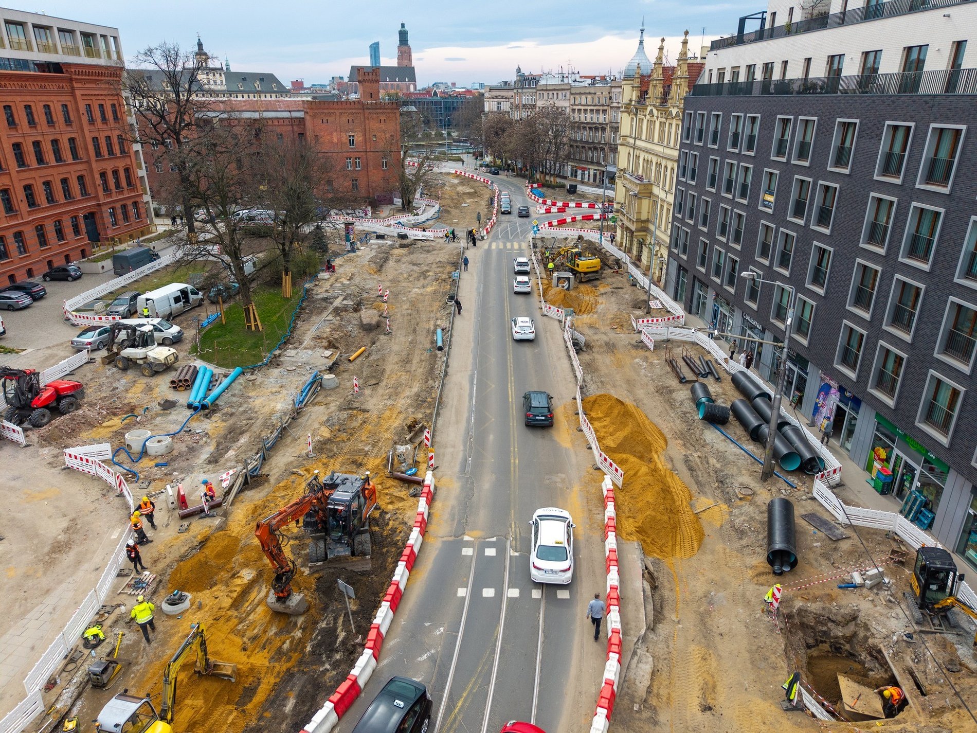 - Prace skupiają się teraz na przebudowie infrastruktury podziemnej, która w tym rejonie występuje dość gęsto. Są to sieci wodno-kanalizacyjne, gazowe, jak również kable energetyczne czy teletechniczne - opowiada kierownik projektu Michał Kulicki z Wrocławskich Inwestycji, miejskiej spółki, która nadzoruje przedsięwzięcie.