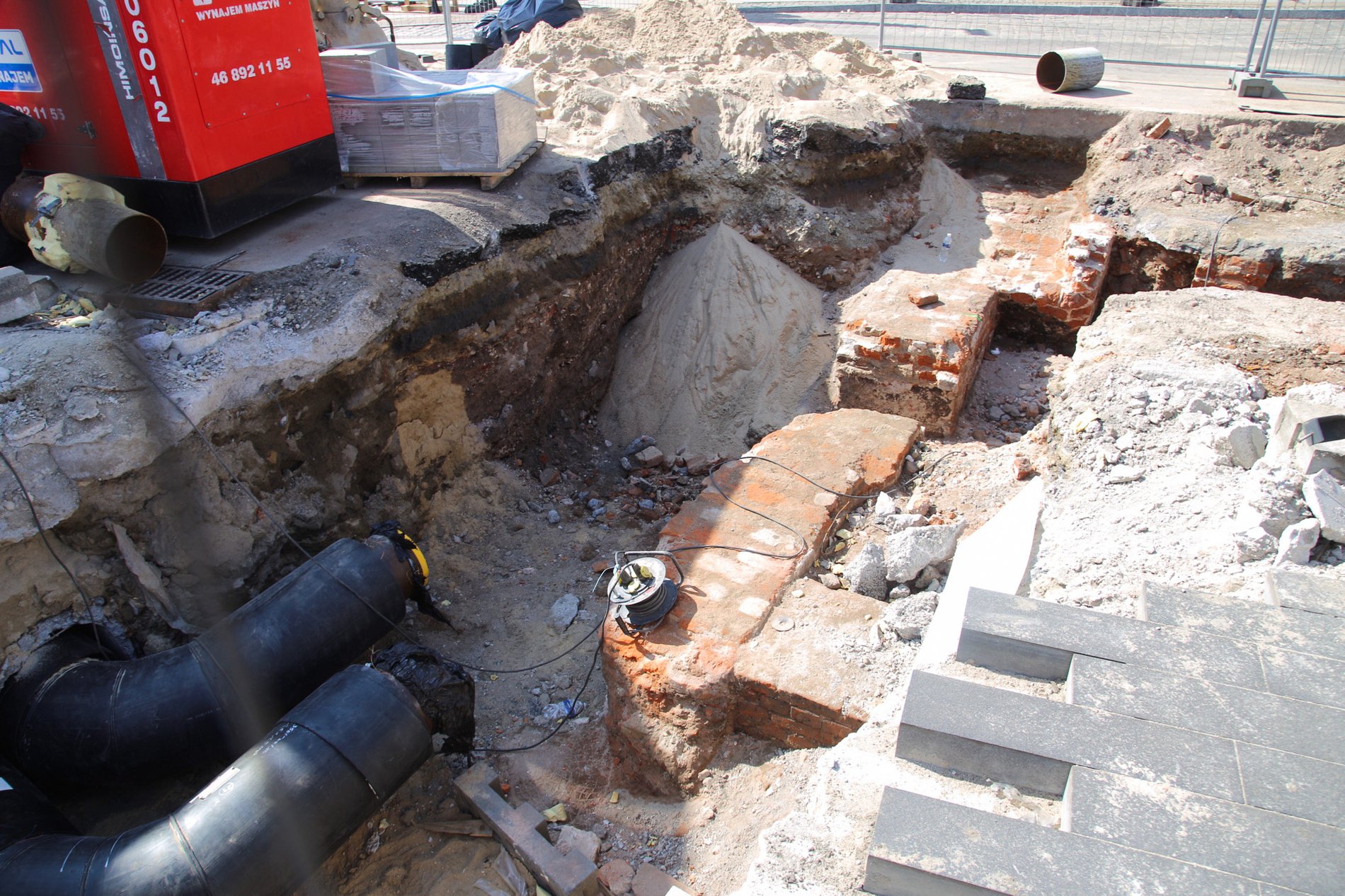 Przechodząc przy obecnych wykopach dostrzec można wiele cegieł i fragmentów dawnej zabudowy. Ale w miejscu przy skrzyżowaniu ulicy Szewskiej z Kazimierza Wielkiego jest fragment szczególnie okazały. - W tym miejscu wykopy mają około 2 metry. Ponieważ działamy w obrębie Starego Miasta, na placu budowy, archeolog jest tu codziennie, bo tak dużo odkopujemy fragmentów historycznej zabudowy - mówi nam Małgorzata Babska, manager ds. komunikacji w firmie Fortum.