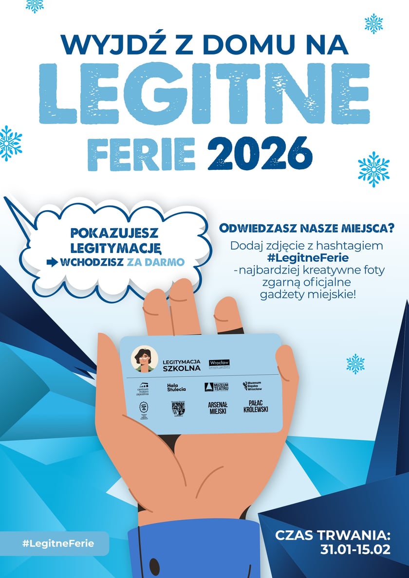Mamy nadzieję, że ta różnorodna propozycja od miejskich instytucji kultury to dopiero początek przygody z poznawaniem naszego miasta, którego tajemnice można zacząć odkrywać podczas "Legitnych Ferii". Kto by pomyślał, że wystarczy do tego tylko legitymacja ucznia szkoły ponadpodstawowej? Młodzieżowi odkrywcy - Wrocław na was czeka!