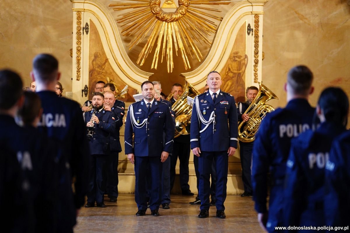 Akty ślubowania wręczyli funkcjonariuszom komendant Wojewódzki Policji we Wrocławiu nadinsp. Paweł Półtorzycki oraz zastępca komendanta insp. Krzysztof Kumaszka.