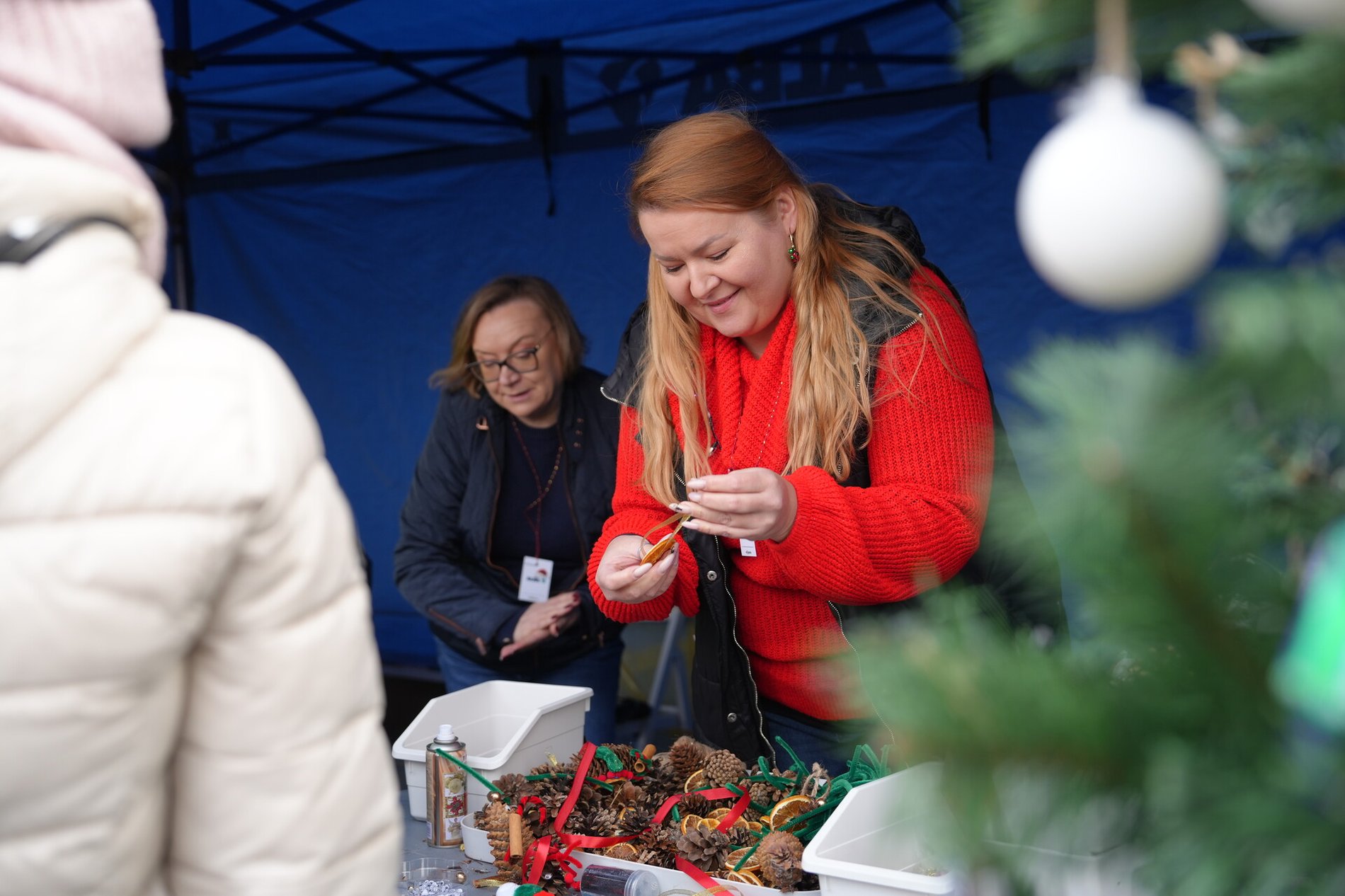 I takie właśnie ozdoby powstawały dziś pod okiem. Uczestnicy pikniku wykorzystali do nich m.in. tekstylia, włóczki, domowe „skarby” oraz szyszki, patyczki i gałązki.