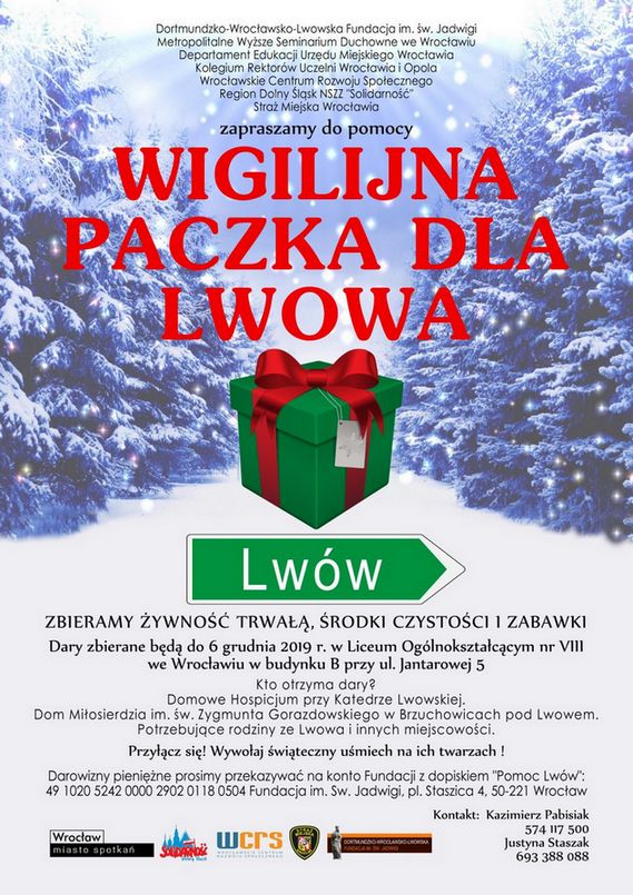 Jak co roku Region Dolny Śląsk NSZZ „Solidarność” bierze udział w świątecznej akcji charytatywnej na rzecz naszych rodaków zamieszkałych we Lwowie i okolicy. Organizatorzy zachęcają wszystkich członków i sympatyków Związku do okazania solidarności serc z tymi, którzy czekają na pomoc.