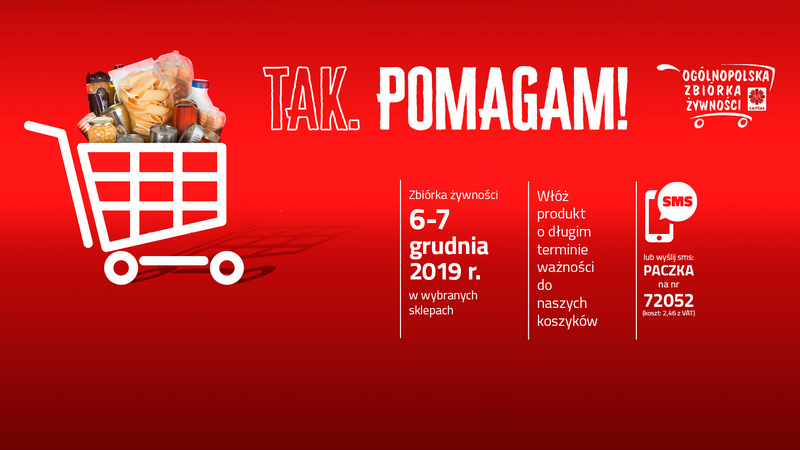 W następny weekend - 6 i 7 grudnia 2019 r.,Caritas Polska we współpracy z Caritas Archidiecezji Wrocławskiej zorganizuje, w supermarketach, sieciach handlowych i sklepach osiedlowych Wrocławia, już siedemnastą zbiórkę żywności pod hasłem „Tak, POMAGAM!”.