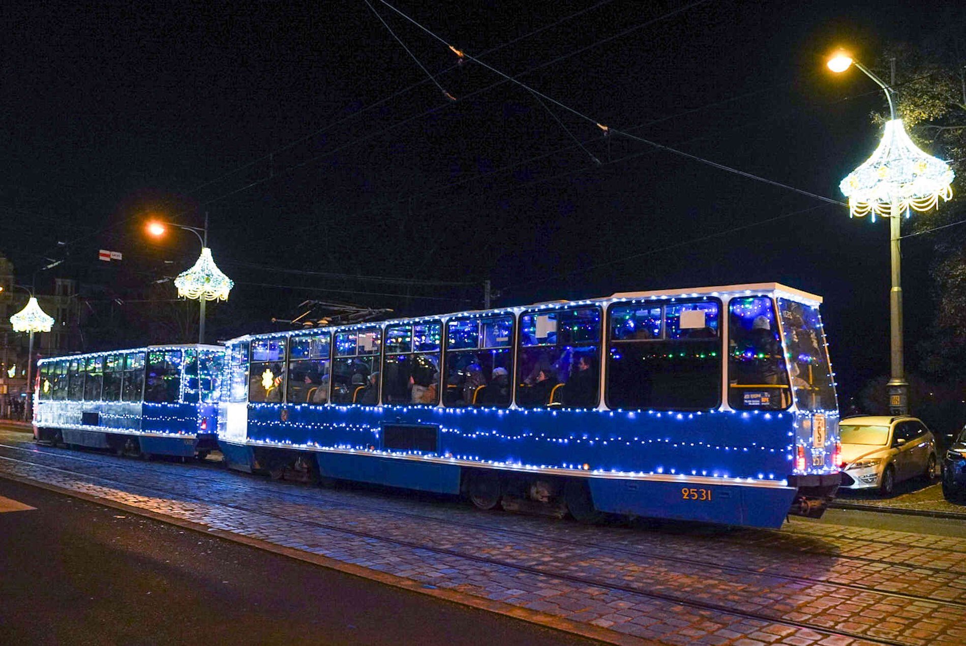 "Światełkowy tramwaj" jeździł w tym roku w mikołajki 6 grudnia. Sobota 20 grudnia będzie jego drugim i w tym roku ostatnim kursem.