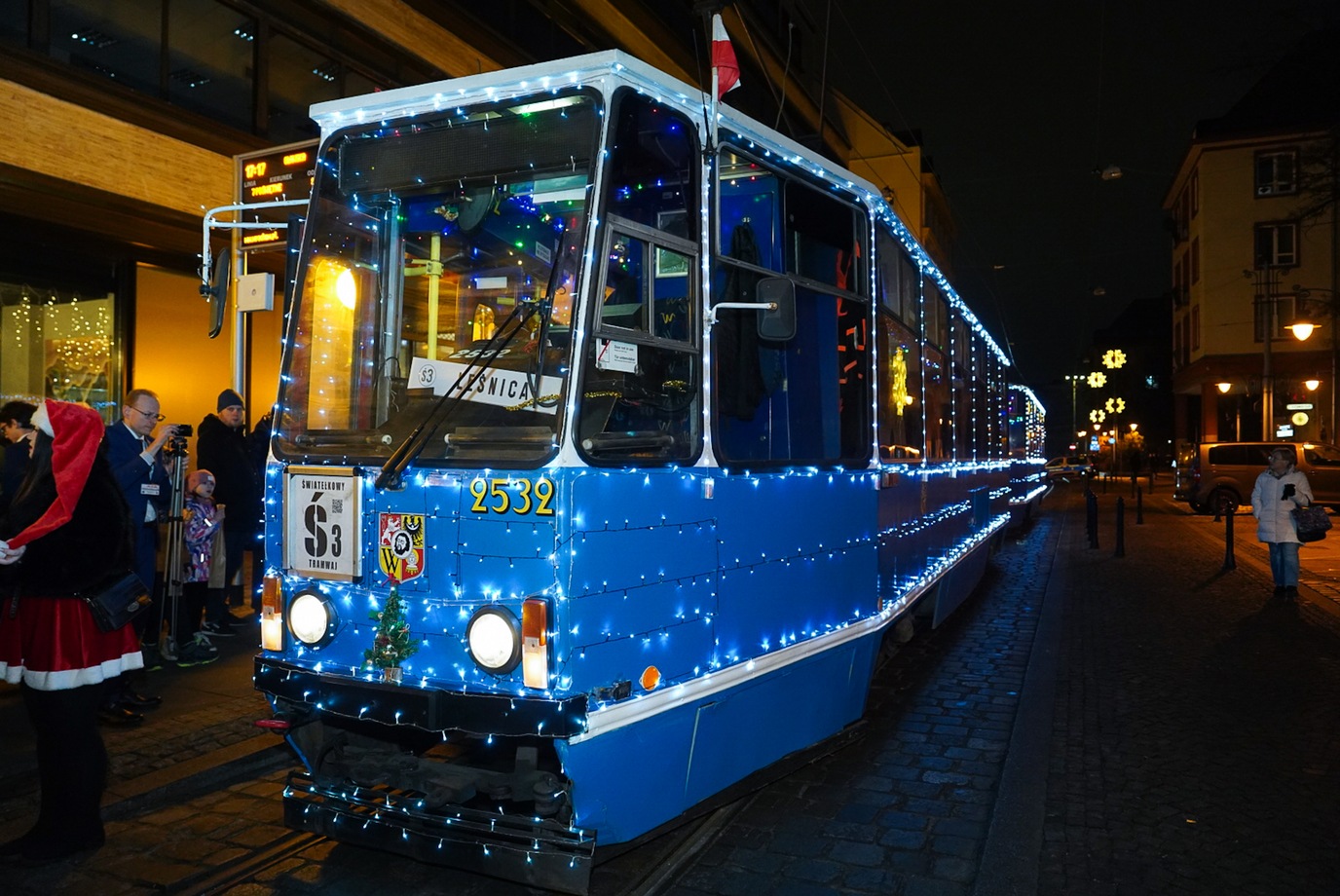 Rozświetlony Konstal 105 wyruszył w sobotę (20 grudnia) z przystanku "Oławska", czyli tuż obok Rynku. Pojechał do Leśnicy, a stamtąd na Księże Wielkie.