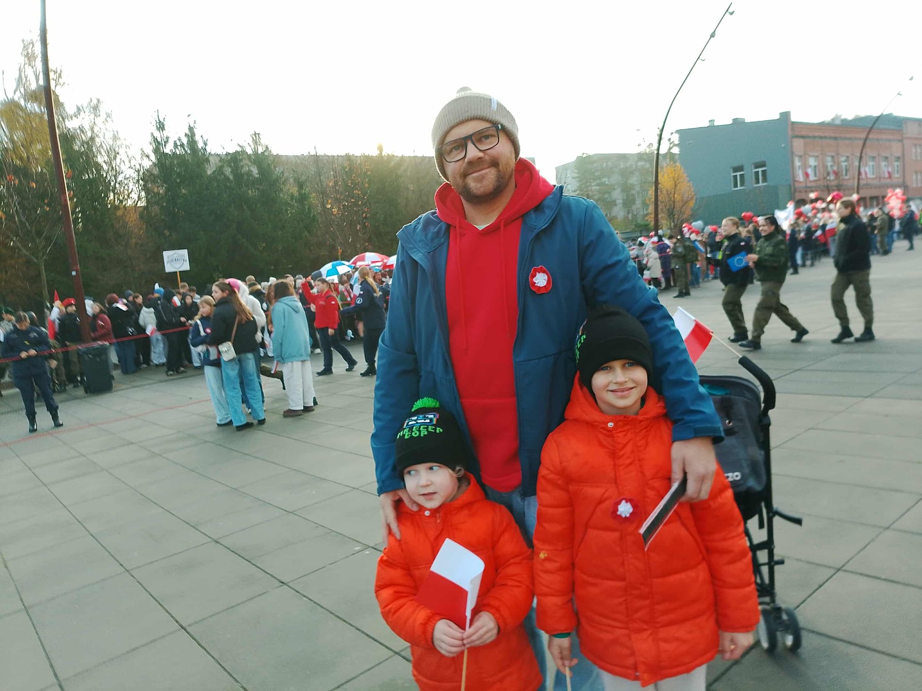 Pan Mateusz z synami Janem i Jakubem przyszedł, aby im pokazać naszą historię. - Obaj znają hymn. Pójdziemy odśpiewać go na Rynku - mówi.