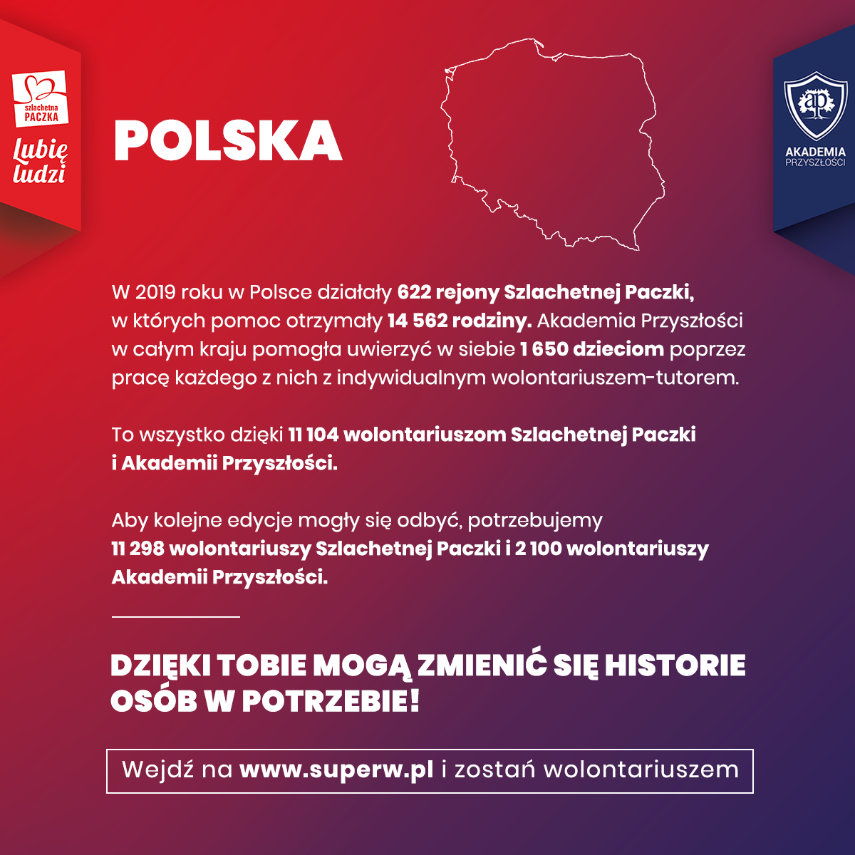 Ochotnicy Szlachetnej Paczki docierają z pomocą do osób starszych, schorowanych i z niepełnosprawnościami czy rodzin i ludzi potrzebujących.