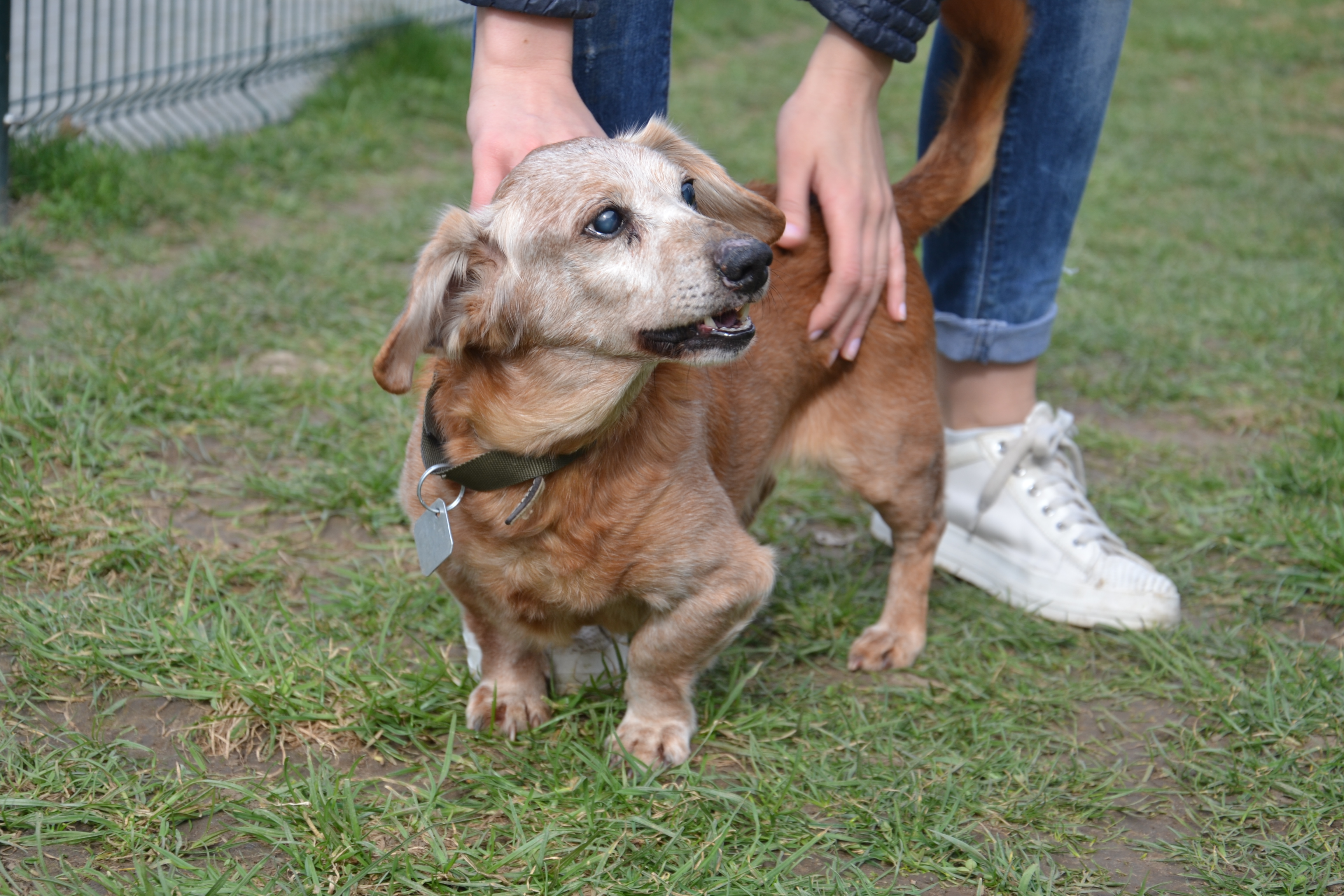 Wituś to starszy pan w typie jamnika. Jak na swój wiek jest dość aktywny. Bardzo wesoły i kontaktowy. Lubi spędzać czas z opiekunem. Jego wiek oceniono na około 13 lat.
