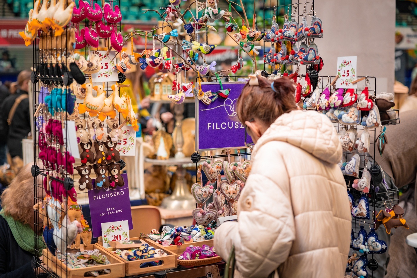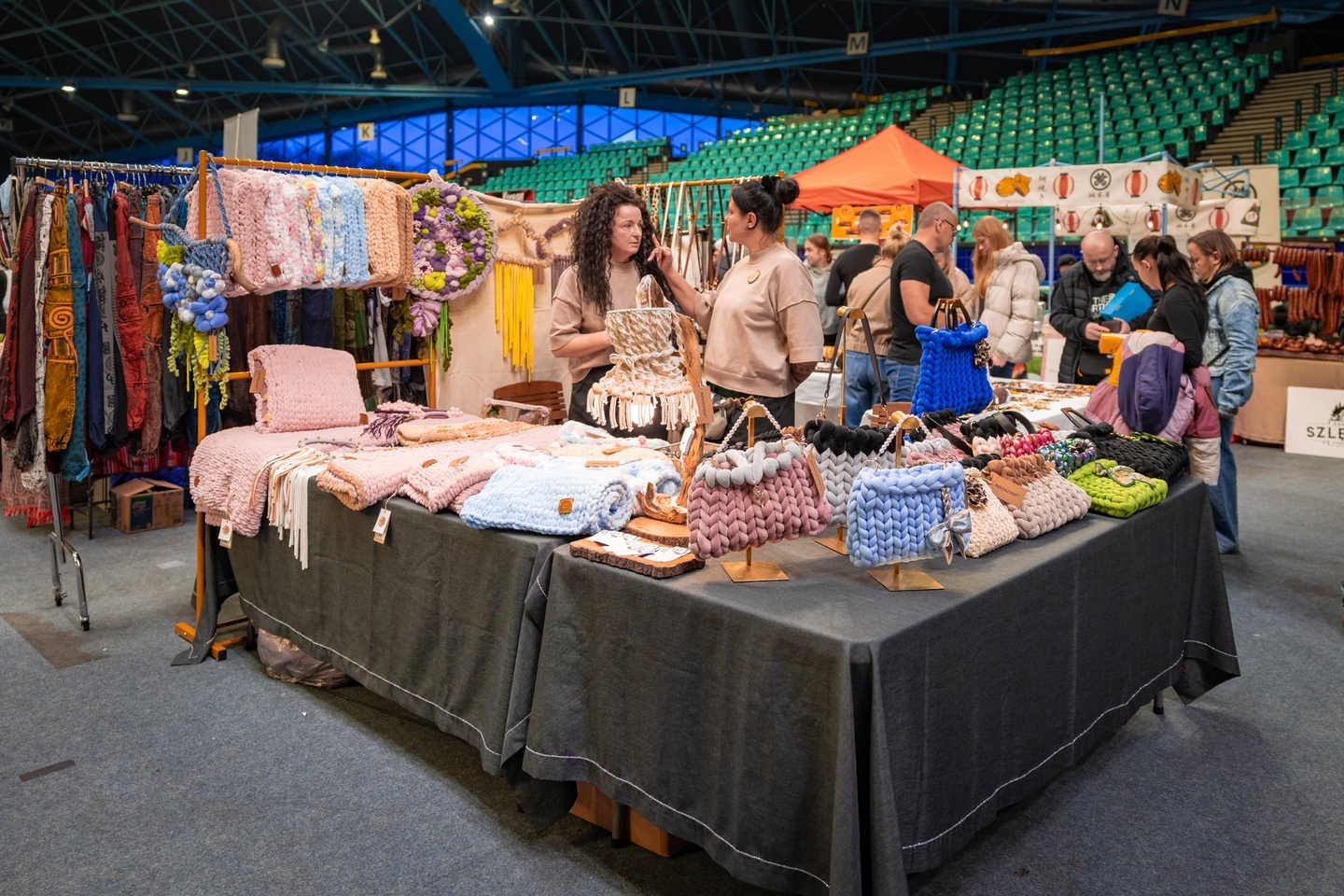 W Hali Orbita podczas Targów Rzeczy Wartych Zachwytu można zaopatrzyć się zarówno w ciekawe ubrania, dokupić torebkę z grubej włóczki (to jeden z hitów), do niej dobrać filcowy dodatek i może dekoracyjne serduszko z liskiem.