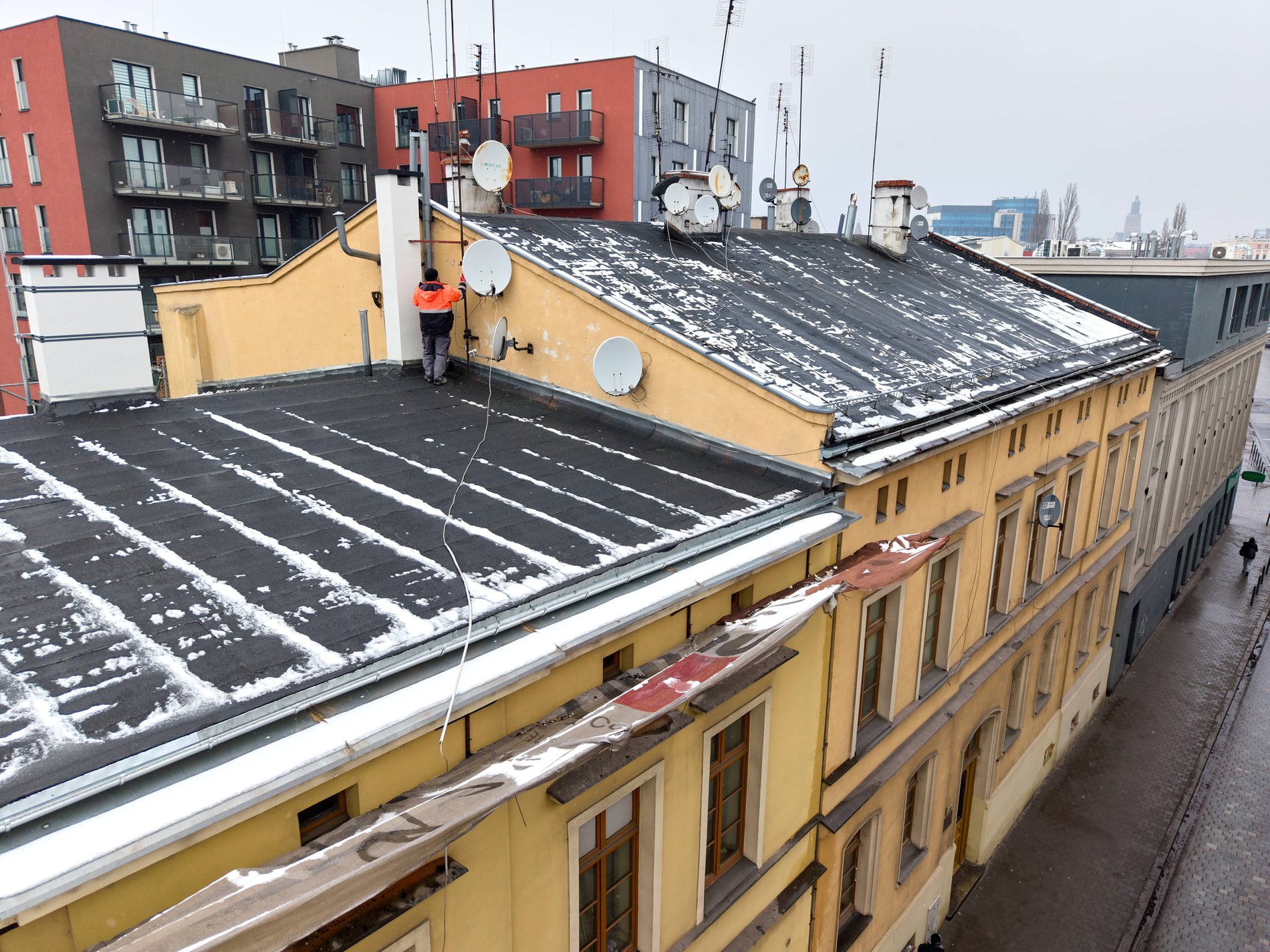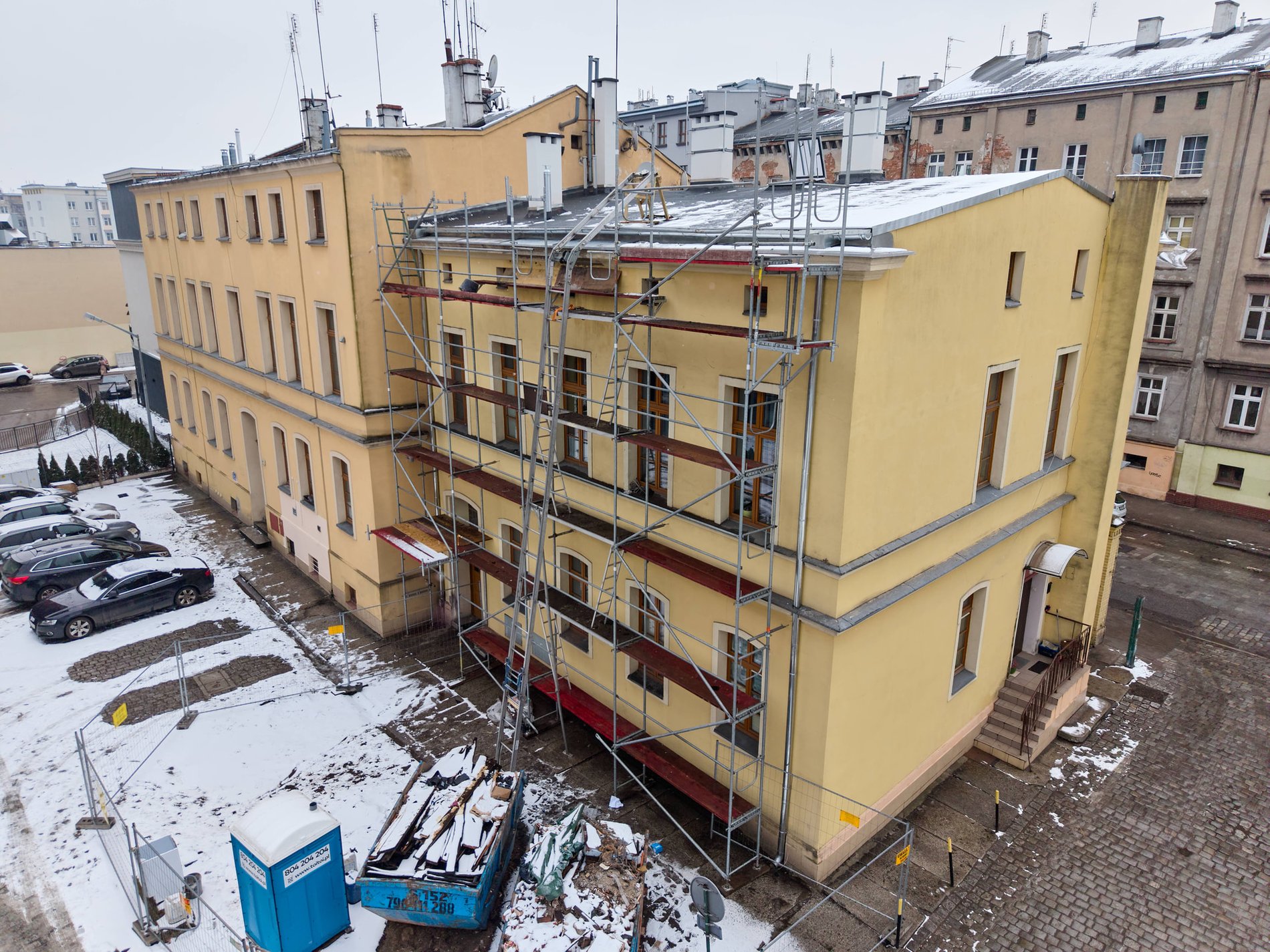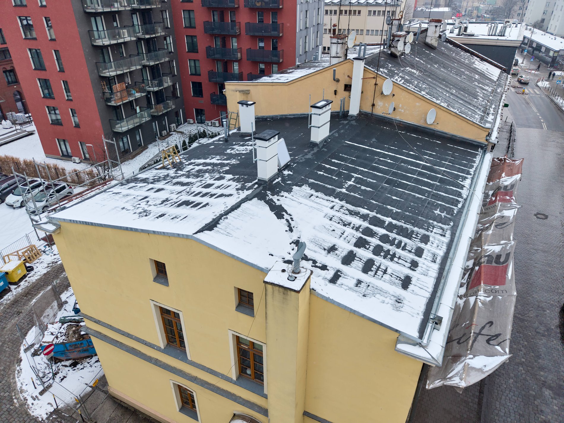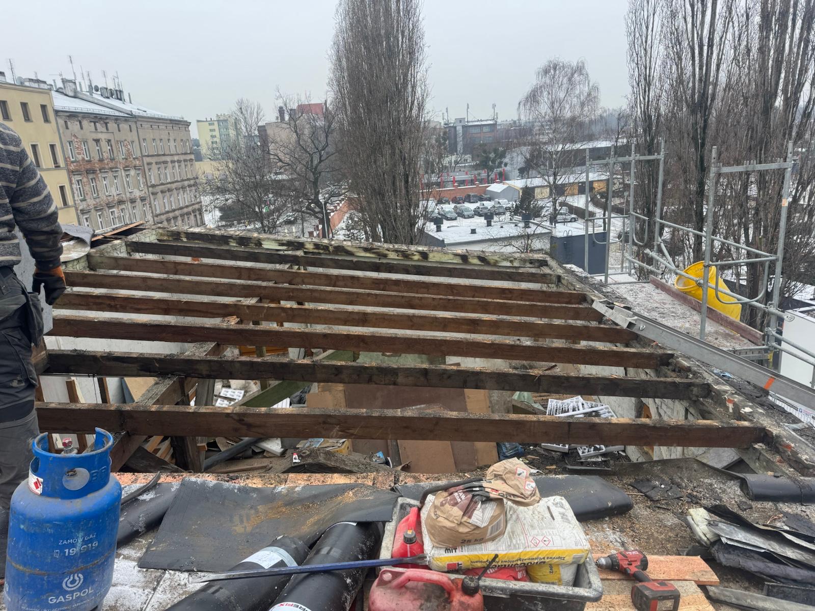 Prace objęły demontaż uszkodzonych elementów, wzmocnienie konstrukcji dachu oraz jej zabezpieczenie impregnacją ognioochronną i biobójczą, co znacząco wydłuży trwałość materiałów i zwiększy bezpieczeństwo budynku. Wykonano nowe pokrycie dachowe, które przywróciło pełną szczelność i odporność na warunki atmosferyczne, a wymiana rynien i rur spustowych zapewni prawidłowe odprowadzanie wody opadowej. Remont objął również przemurowanie kominów oraz wykonanie nowych obróbek blacharskich, które zabezpieczą najbardziej wrażliwe miejsca dachu przed powstawaniem nieszczelności.Zarząd Zasobu Komunalnego