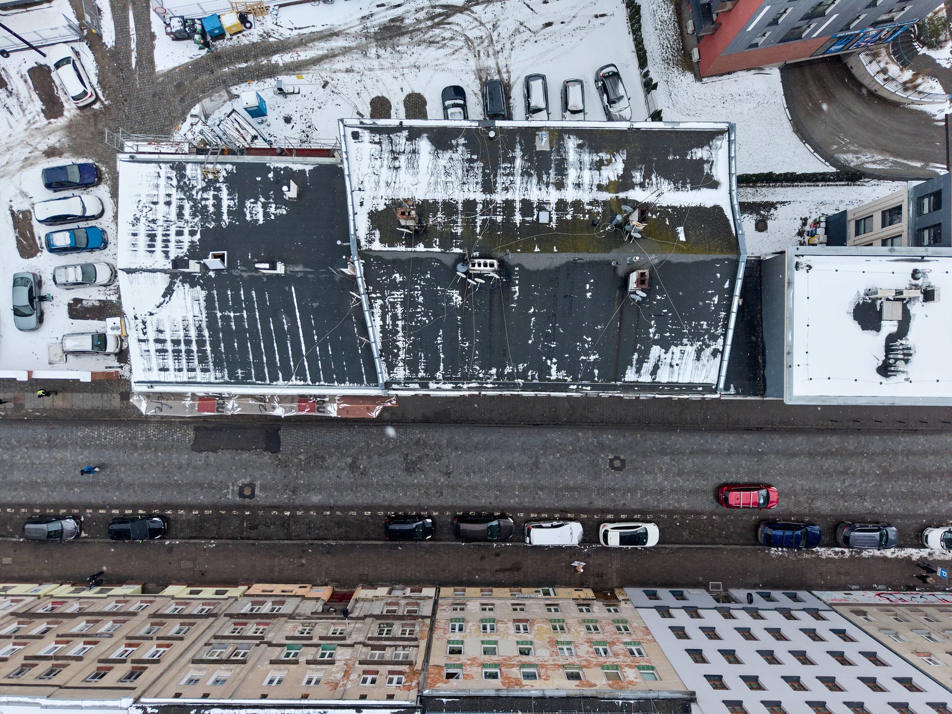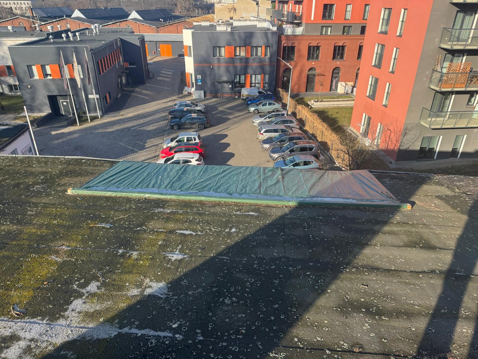 Kończy się remont dachu w budynku nr 33 przy ul. Tęczowej. To tutaj jesienna wichura z października 2025 roku powaliła drzewo. Kolos spadł na budynek, uszkadzając właśnie dach i gzyms. Choć wykonawca miał czas do czerwca, uwinął się z pracami w miesiąc.