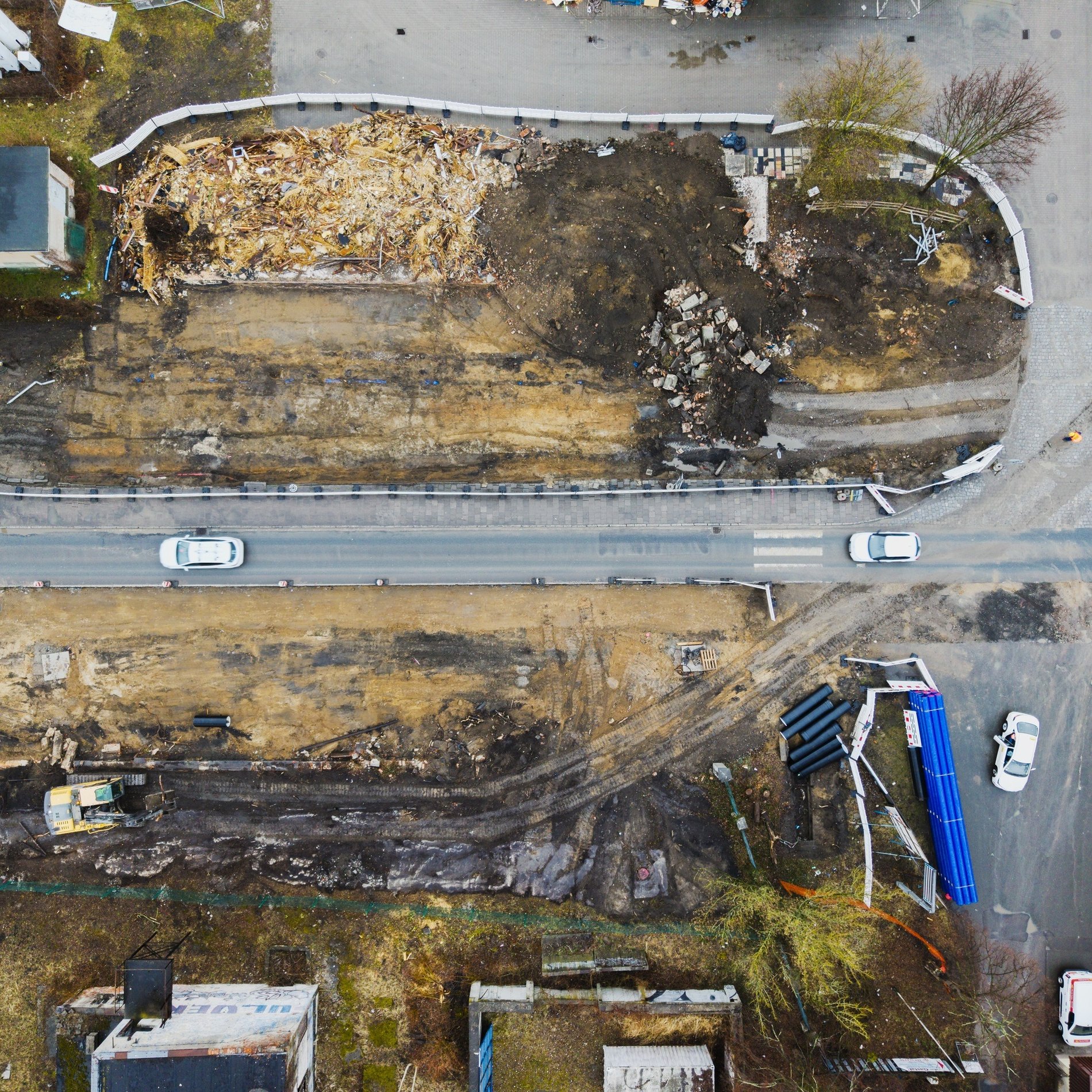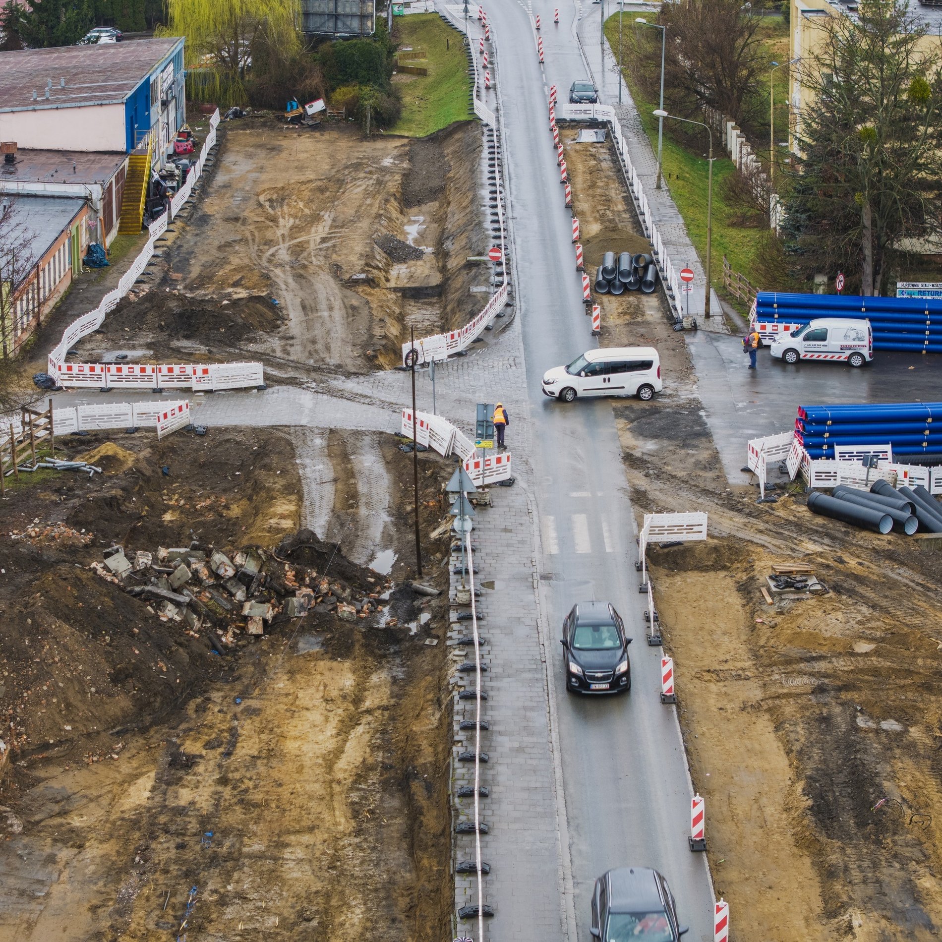 - Trwają intensywne roboty ziemne, rozbieramy stare nawierzchnie i przygotowujemy teren pod nowe drogi - informuje nadzorująca budowę spółka Wrocławskie Inwestycje. - Usuwamy kolizje z istniejącymi instalacjami oraz budujemy bypass na sieci wodociągowej. Budujemy także magistralę wodociągową i kolejne odcinki sieci podziemnych.