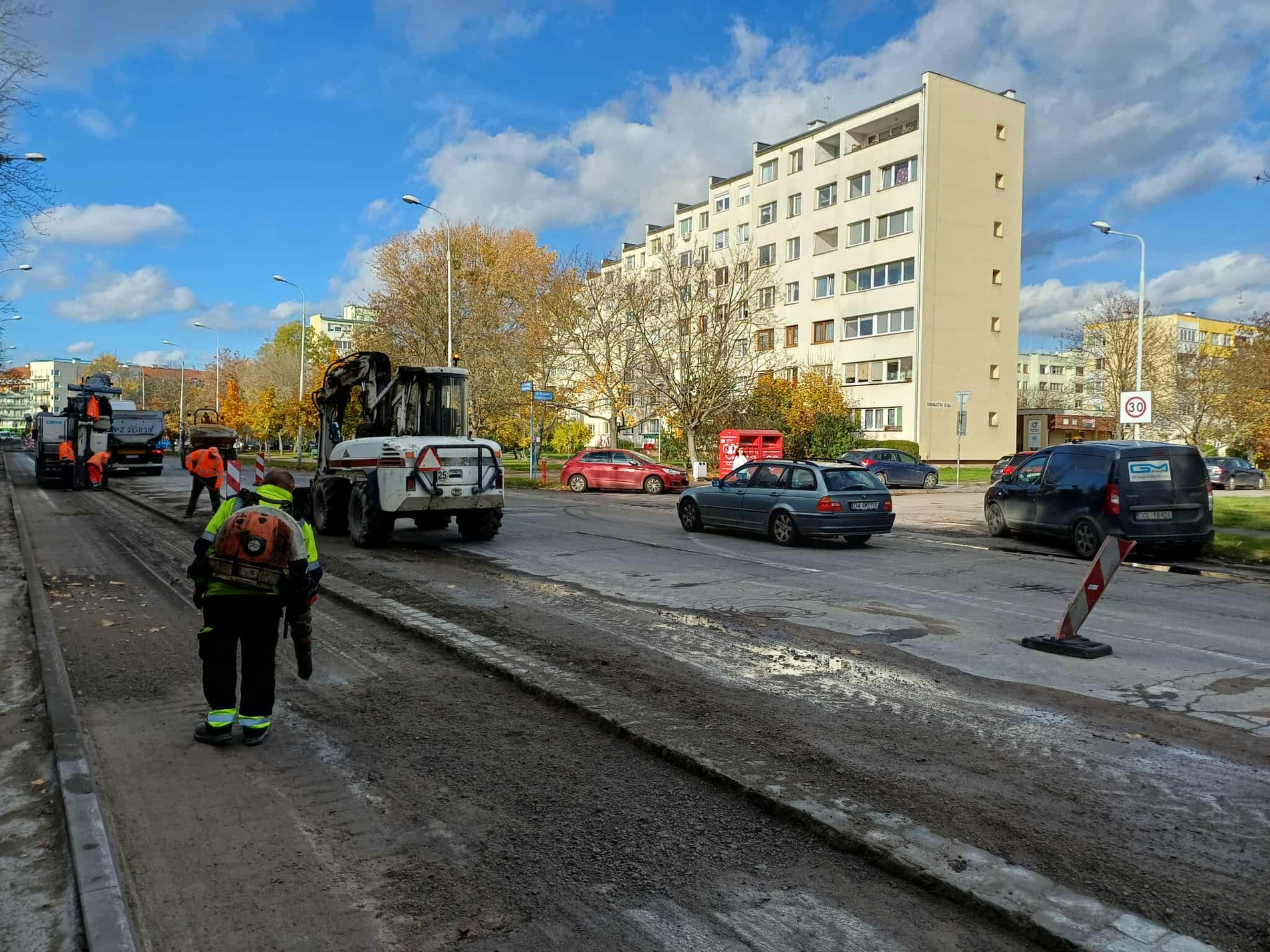 - Moniuszki – po nowej nawierzchni kierowcy pojadą od poniedziałku 3 listopada. Pierwsza połowa jezdni jest prawie gotowa, wczoraj układano warstwę wiążącą asfaltobetonu i siatkę wzmacniającą, jutro układana będzie warstwa ścieralna.W nocy z 2/3 listopada front robót przerzucony zostanie na drugą połowę jezdni i rozpoczną się rozbiórki.