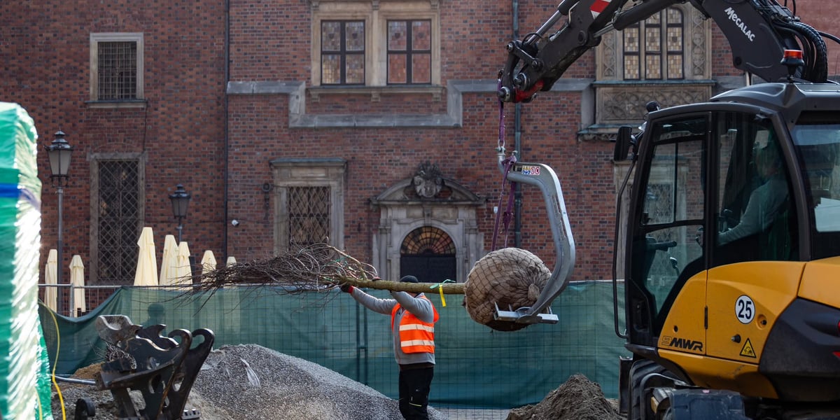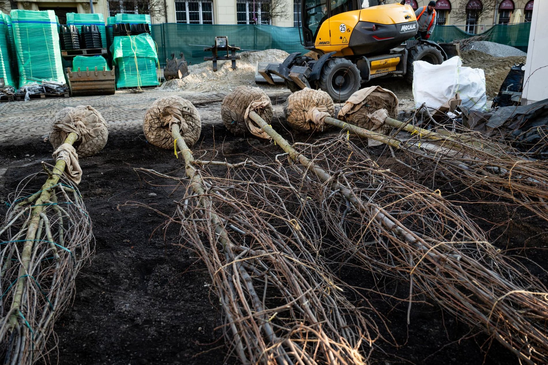 Dojechało właśnie 20 nowych drzew - wiązy i robinie. To część projektu zazieleniania Rynku i ul. Świdnickiej, gdzie łącznie pojawi się aż 120 drzew oraz ponad 2500 krzewów i bylin.