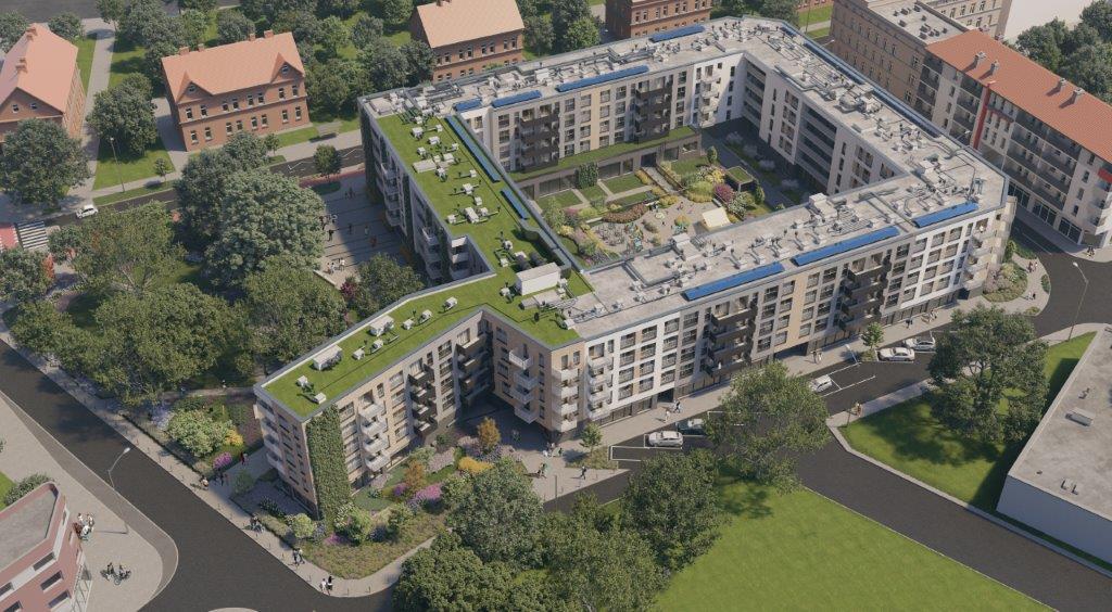 Całość powstanie zgodnie z wrocławskim „Zielonym standardem budownictwa”. Na dachu zamontowane mają być panele fotowoltaiczne, a co najmniej 30 proc. jego powierzchni zajmie zieleń. Będą zielone ściany, systemy retencji deszczówki oraz ogólnodostępne patio z placem zabaw.