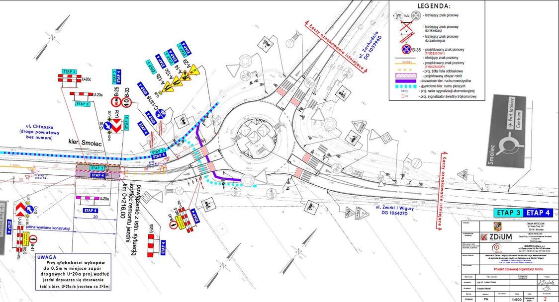 Na odcinku tuż za rondem 11 Pułku Lotnictwa Myśliwskiego w kierunku Smolca jezdnia zostanie zwężona, a ruch będzie odbywał się wahadłowo. Zmiany są niezbędne, aby rozpocząć prace rozbiórkowe, a następnie wymianę gruntu i podbudowy.