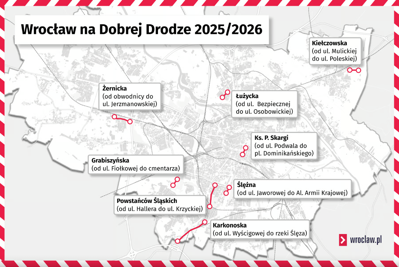 Na styku dwóch edycji programu #WrocławNaDobrejDrodze kończą się prace na jednej ulicy i rozpoczynają na trzech kolejnych