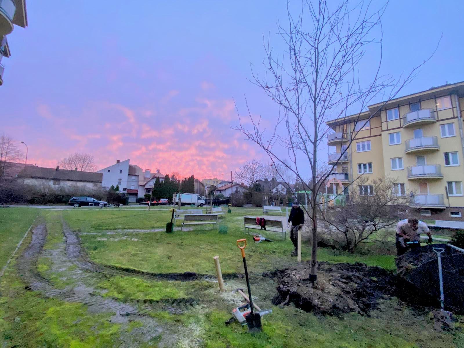 W odpowiedzi na zgłaszane obawy dotyczące losu istniejącej zieleni podjęto działania mające na celu ochronę roślin kolidujących z planowaną inwestycją. W poniedziałek przeprowadzono bezpieczne przesadzenie jarzębiny oraz krzewów w nowe miejsce, gdzie będą mogły dalej rosnąć i pełnić funkcje estetyczne oraz przyrodnicze.