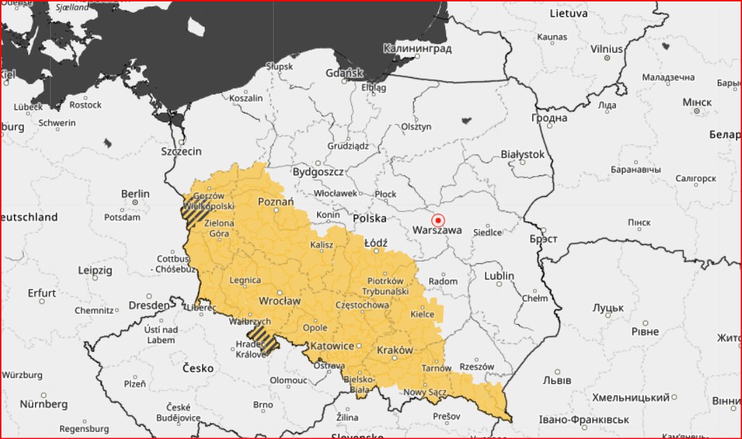 Ostrzeżenie obowiązuje od dziś (12 grudnia) od godz. 18:00 do jutra (13 grudnia) do godz. 9:00. Mgła może być tak gęsta, że widzialność będzie miejscami wynosić poniżej 200 m, a lokalnie może osadzać się szadź.