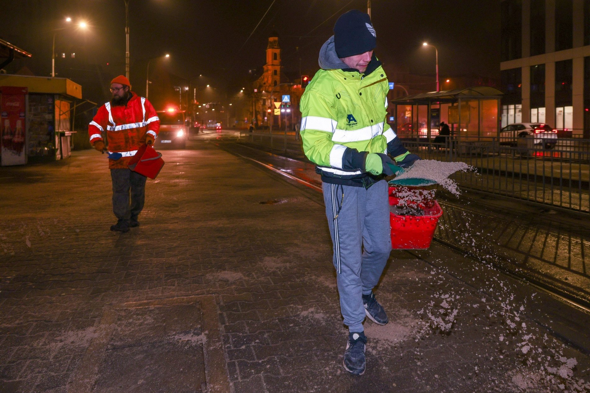 – W takich warunkach, jak dzisiejszej nocy, nawet sól i piasek potrafią zamarznąć. Marznące opady niemal natychmiast niweczą efekty naszej pracy. Niemniej jednak, sól rozpuszcza lód, więc w przypadku mniej intensywnego opadu, działa prewencyjnie. Przy takiej aurze, konieczne jest posypywanie tych samych miejsc regularnie, co 2-3 godziny, żeby kruszywo i sól nie zostały spłukane lub zmrożone – dodaje.