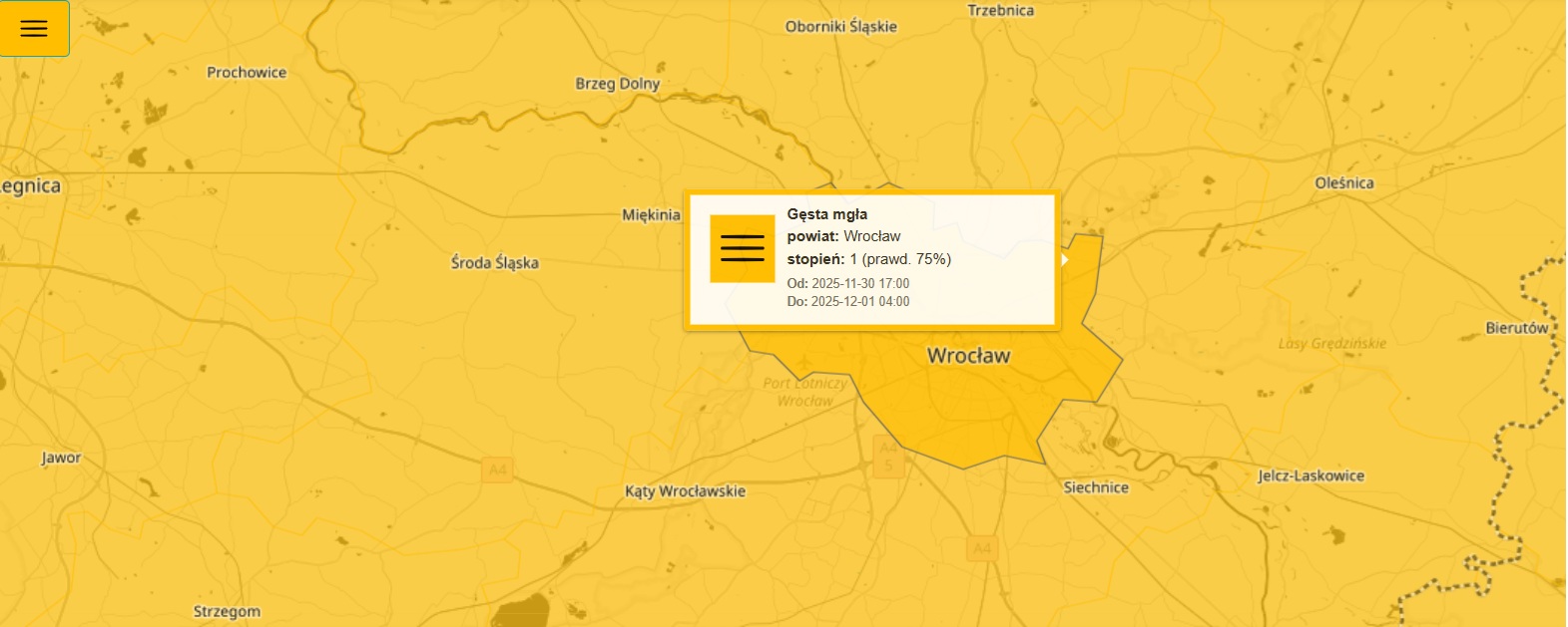 - Ostrzeżenia meteorologiczne: Gęsta mgła