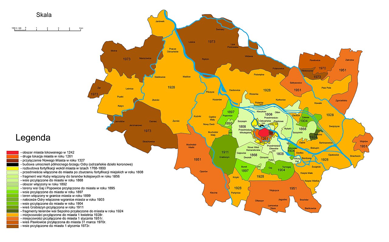 Jak podaje Robert Szmytkie, współautor opracowania „Przekształcenia przestrzeni miejskiej Wrocławia. Ujęcie geograficzne” - W 1924 r. do Wrocławia przyłączono wieś Sępolno, a w 1928 r. dwa dawne miasta (Leśnica i Psie Pole) i 30 wsi (…), w wyniku czego powierzchnia miasta wzrosła z 49,2 km2 do 175,1 km2.