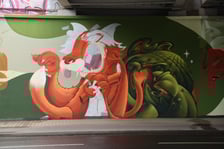 Mural nie jest jeszcze dokończony, np. lisowi brakuje jeszcze kilku fragmentów pyska, ale wielki napis „Serwus Popowice" już jest.