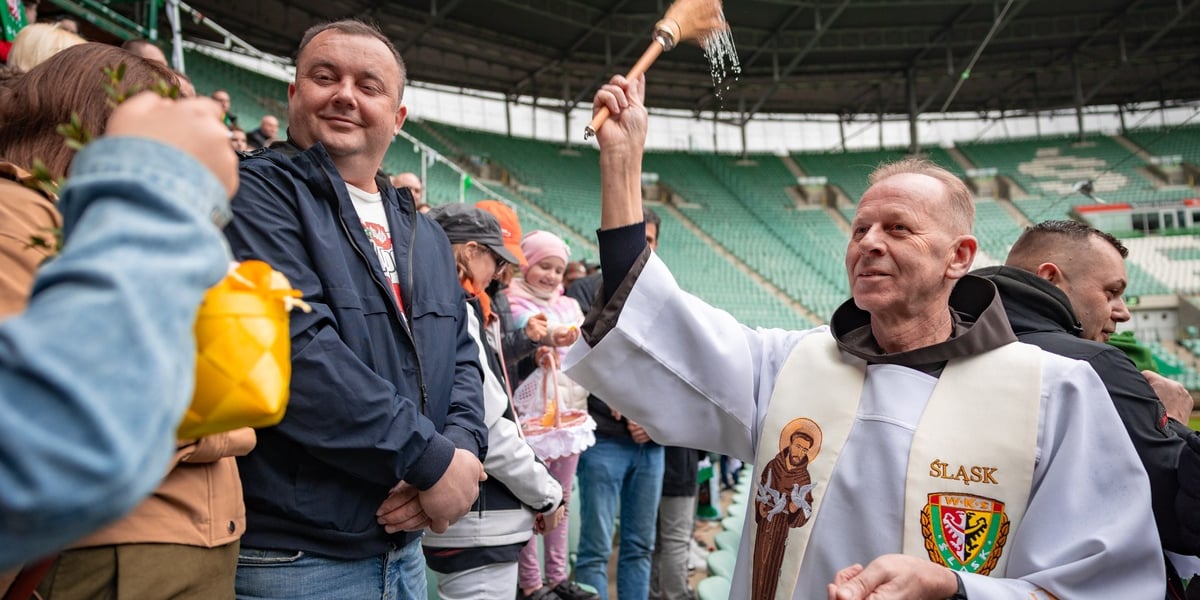 Na przedświąteczne spotkanie wrocławianie przychodzą z tradycyjnie przystrojonymi koszyczkami. Jedyną różnicą jest więcej motywów w klubowych barwach Śląska Wrocław, i w samych stroikach, i na ubraniach uczestników spotkania na trybunie stadionu na Pilczycach.