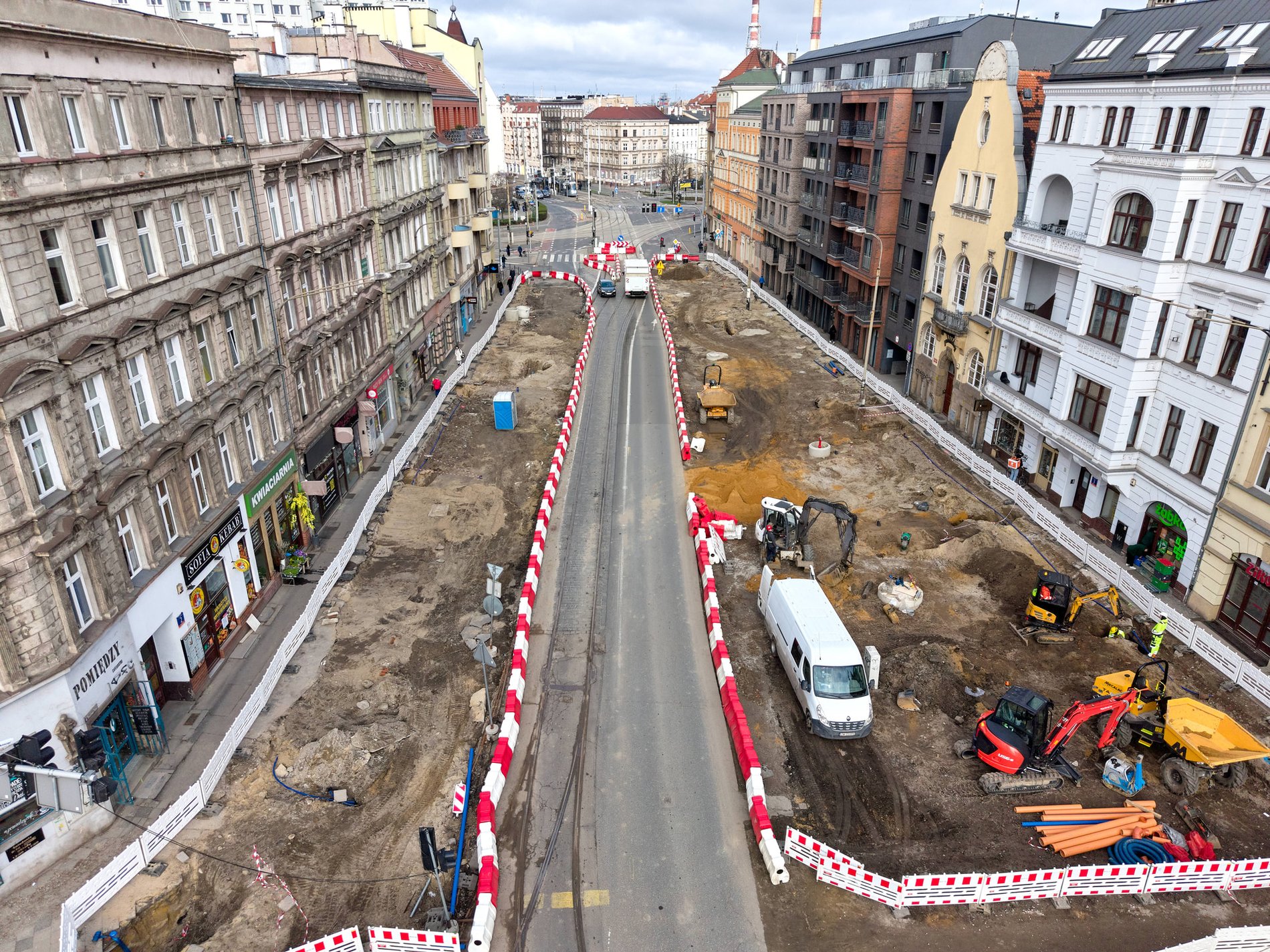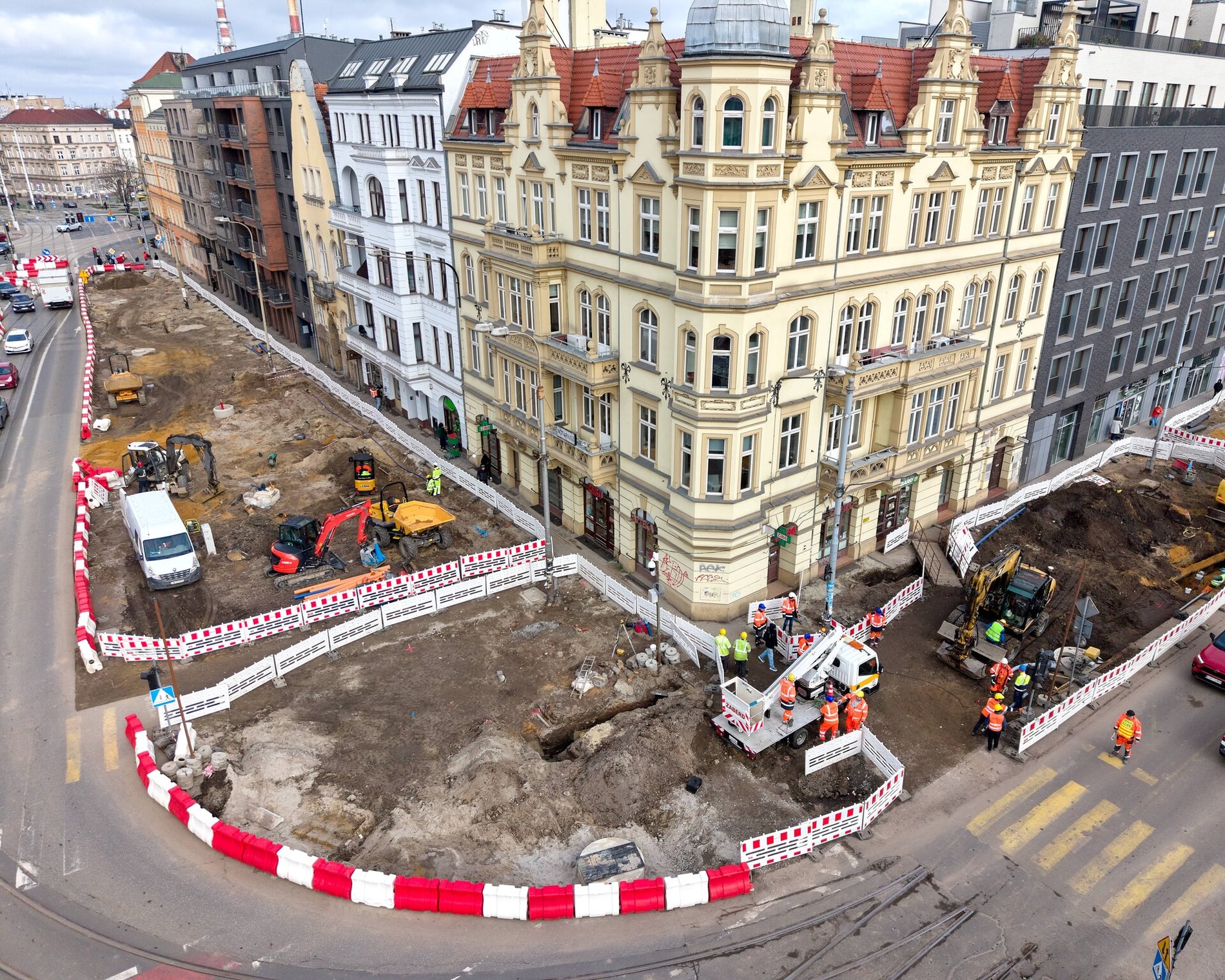 Zanim jednak zaczną powstawać przystanki, tory i jezdnie, wymieniane są instalacje podziemne. - Prace skupiają się teraz na przebudowie infrastruktury podziemnej, która w tym rejonie występuje dość gęsto. Są to sieci wodno-kanalizacyjne, gazowe, jak również kable energetyczne czy teletechniczne - wymienia kierownik projektu Michał Kulicki z Wrocławskich Inwestycji, miejskiej spółki, która nadzoruje przedsięwzięcie.