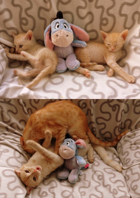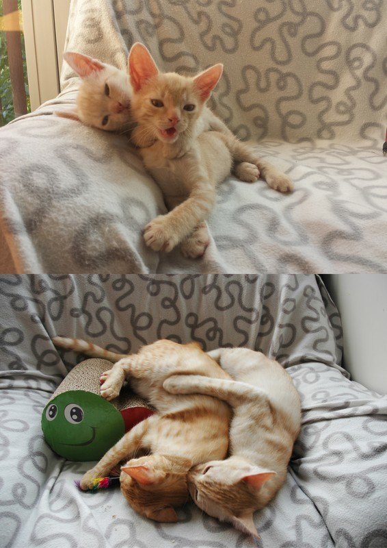 Biszkopt z Karmelem to maluchy, które straciły mamę, gdy miały około 5-7 dni. Opieki nad kociakami podjął się chłopak Marty. Jak to wyglądało w rzeczywistości? – Karmienie co 2 godziny, masowanie brzuszków, tulenie – ciągła opieka. Bardzo się o nich baliśmy. Wychowywanie takich maluchów to często walka z wiatrakami. A im się udało – wspomina Marta. Ale lekko nie było. – Całe nasze szafki wypchane były strzykawkami, lekami, mlekami w proszku, butelkami i smoczkami. Ciężko było czasem się odnaleźć w tym nadmiarze obowiązków. Byliśmy dla nich rodzicami. Jedynymi, jakich mieli – dodaje. Dzisiaj oba rudasy wyrosły na młodych kocich dżentelmenów. Są „twarzami” grupy NEKO.
