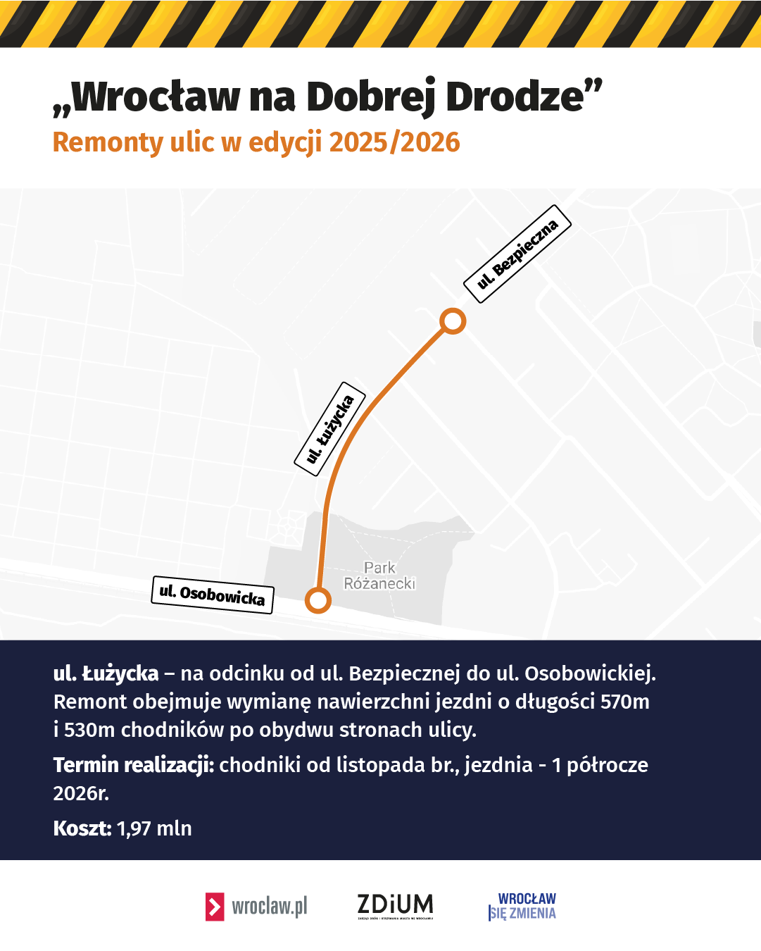 - 570-metrowy odcinek od ul. Bezpiecznej do ul. Osobowickiej oraz chodniki po obu stronach,