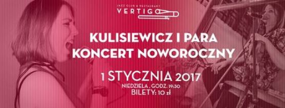 Vertigo zaprasza na wyjątkowy koncert noworoczny – wystąpi duet Kulisiewicz i Para.To duet w którym ukryło się trio, wokal i skrzypce oraz gitara.
