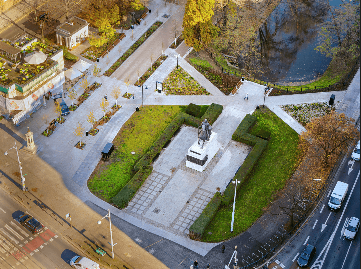 Jeszcze w tym roku kalendarzowym udało się zakończyć zazielenianie fragmentu Promenady Staromiejskiej przy pomniku Bolesława Chrobrego, w miejscu, gdzie ulica Świdnicka przecina się z Podwalem.