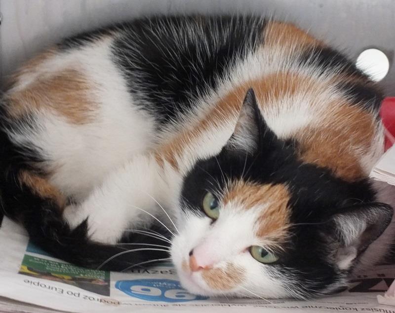 Została przywieziona z interwencji. Przeszła operacje usunięcia guzków. Ida trzyma się na uboczu, a w stosunku do ludzi jest jeszcze bardzo nieśmiała i ostrożna (czasem zdarza się, że syczy), ale robi postępy i już kilka razy dała się pogłaskać. Widać, że jest zainteresowana człowiekiem, ale jeszcze troszeczkę się boi. W domowych warunkach przy cierpliwym opiekunie, który da jej czas, na pewno Ida szybciej nabierze odwagi i zaufa.
