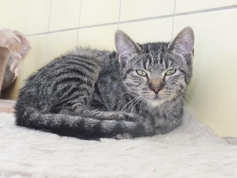 Została znaleziona z rodzeństwem na działkach. Kotka spędziła trzy miesiące w klatce, na kwarantannie, ale niestety nikt jej nie adoptował, ponieważ syczy i prycha. Teraz jest już na kociarni z dorosłymi kotami, gdzie musi walczyć o swoje. Psotka to kotka płochliwa, troszeczkę dzikawa. Za sprawą smakołyków i jej ciekawości, czasami podejdzie bliżej i da się dotknąć. Uwielbia zabawy i zaczepia inne koty, które nie są tak przyjaźnie nastawione jak ona, przez co często obrywa. Potrzebuje opieki i troski, kogoś, kto będzie cierpliwy. Dobrze byłoby, żeby w domu był dorosły lub mały kot-miziak, żeby od niego mogła się nauczyć zaufania do ludzi.