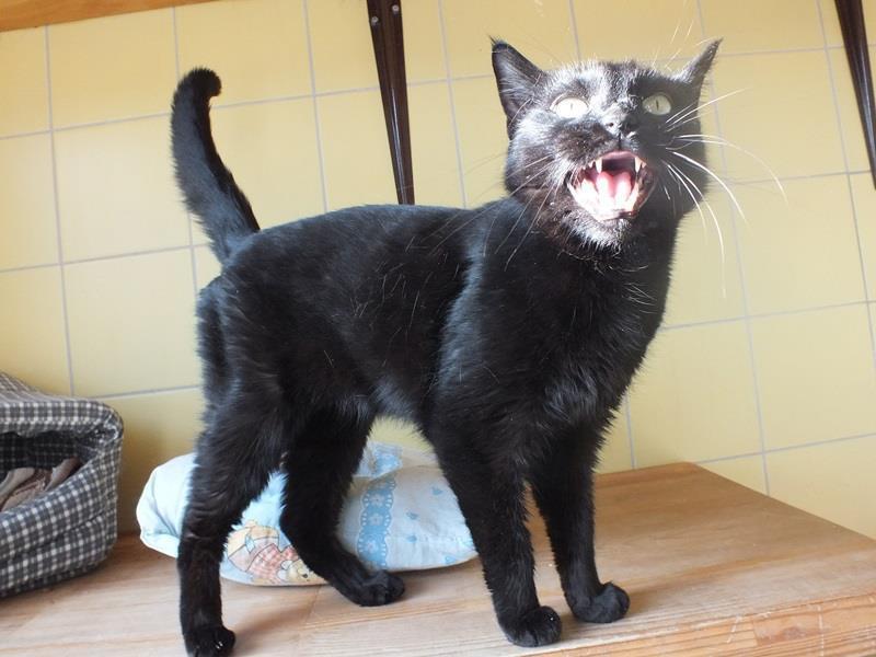 Trafił do schroniska po śmierci właściciela, z dwoma innymi kotami (już zostały adoptowane). Węgielek jest bardzo smutny i wystraszony, chowa się. Stracił swojego właściciela, trafił w obce miejsce i został rozdzielony z rodzeństwem. To dla niego duży szok i ogromny stres.