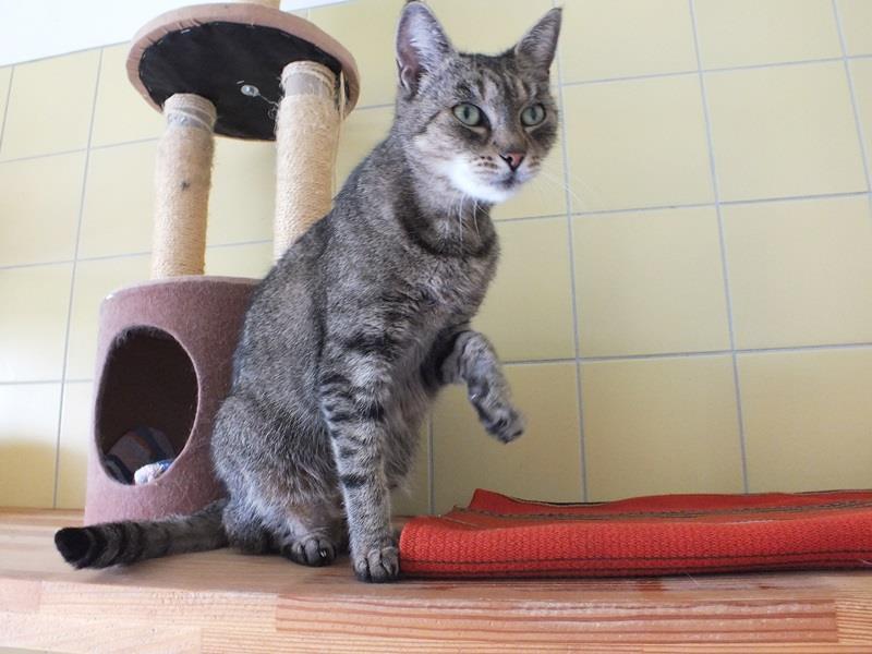 To drobne, kocie dziecko zostało znalezione. Bardzo boi się ludzi, możliwe, że nigdy nie miała domu, albo jej nieufność jest spowodowana stresem związanym z pobytem w schronisku. Lenka syczy, prycha, a większość czasu spędza na belkach pod sufitem. Ma dopiero rok i z pewnością cierpliwa osoba, będzie w stanie ją oswoić, a z czasem sprawić, że zaufa człowiekowi.