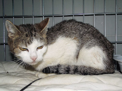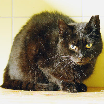 Kotka jest w schronisku od niedawna. Jest bardzo smutna, jej właściciel zmarł. Kotka nie może zrozumieć dlaczego trafiła do nowego miejsca. Boi się, siedzi wciśnięta w kąt klatki. Jest to domowa kotka, która bardzo potrzebuje pomocy.