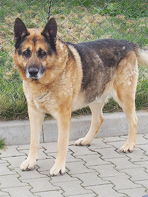 Starszy już owczarek niemiecki. Został oddany przez właściciela z powodu złej sytuacji materialnej. Bardzo spokojny i mądry pies. Wychowany w mieszkaniu, nie sprawia kłopotów. Nie jest już zbyt aktywny. Nie będzie wymagał długich spacerów. Przyjazny, zrównoważony i ciepły pies.