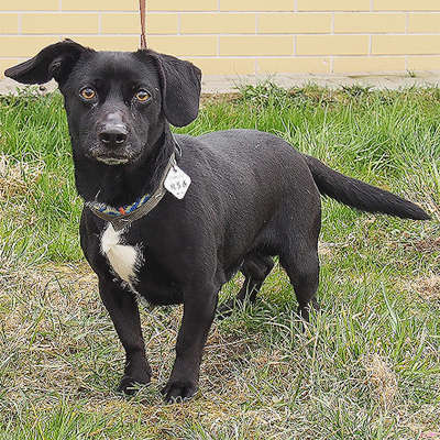 Trafił do schroniska po śmierci właściciela. Bardzo przywiązuje się do opiekuna. Jest energiczny, lubi szczekać i bawić się. Towarzyski, pieszczoszek, bardzo sympatyczny kompan. Dla obcych nieufny, chociaż chętnie się zaprzyjaźnia.