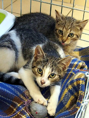 Rodzeństwo - koteczka i kocurek, wychowane na działkach, ale przyzwyczajone do obecności człowieka. Cekin jest odważniejszy i lubi pieszczoty, chętnie i głośno mruczy. Cyntia jest ostrożniejsza, ale także pragnie opieki i przyjaźni.